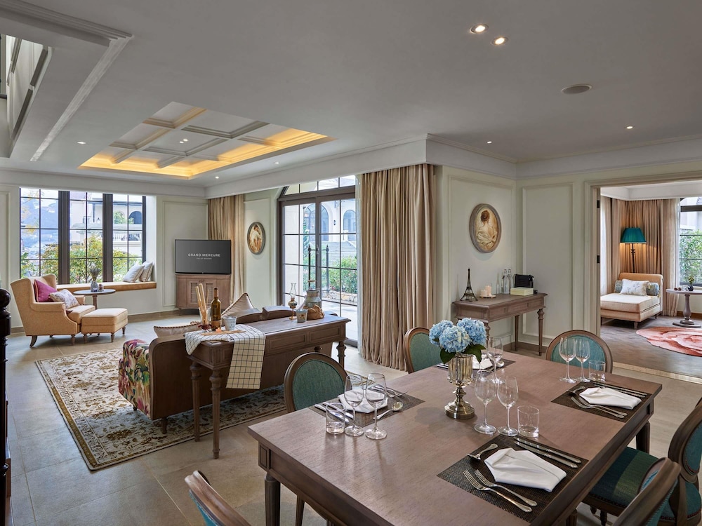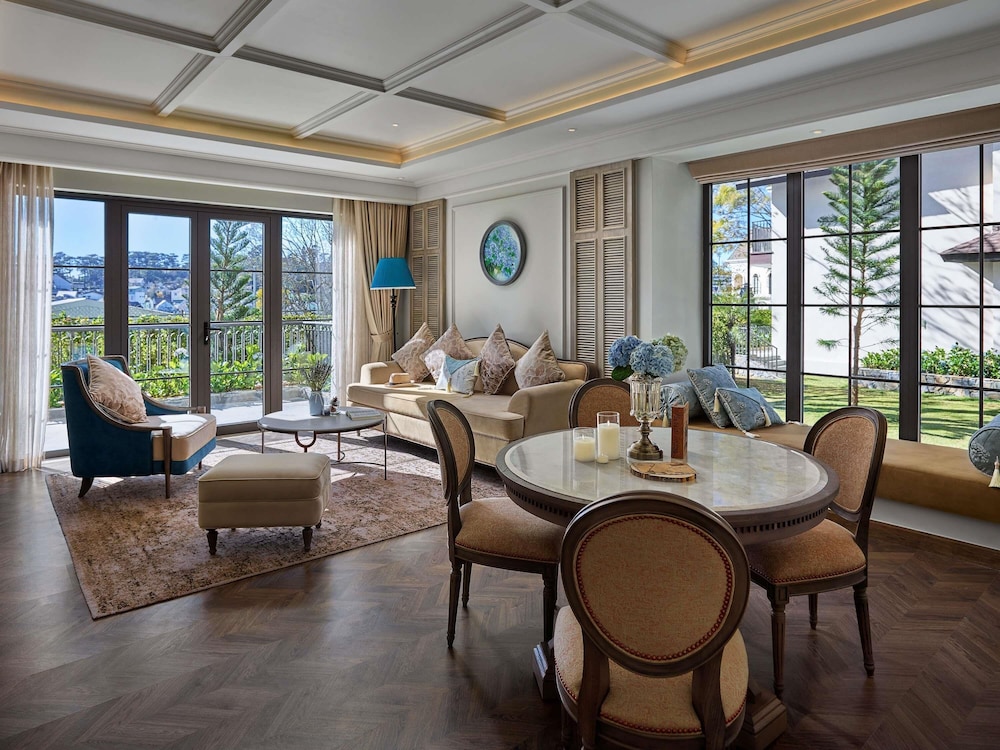 W czasie pobytu w obiekcie takim jak Mercure Dalat Resort znajdziesz się w samym centrum miasta Da Lat pięć minut samochodem od atrakcji takich jak Targ w Đà Lạt i Muzeum Prowincji Lâm Đồng. Ośrodek wczasowy (z atmosferą przyjazną rodzinom) znajduje się 1,4 km od atrakcji takiej jak Kolegium Pedagogiczne w Đà Lạt i 1,9 km od miejsca takiego jak Plac Lam Vien. Poczuj się jak w domu w 131 klimatyzowanych pokojach, których wyposażenie to minibar i telewizor LCD. Bezpłatny przewodowy i bezprzewodowy dostęp do internetu zapewni łączność ze światem, a telewizja kablowa — rozrywkę. Prywatna łazienka — wyposażenie: bezpłatne przybory toaletowe i suszarki do włosów. Udogodnienia obejmują telefon oraz sejfy na laptopa i biurka. Udogodnienia biznesowe to bezpłatny przewodowy dostęp do internetu, usługi pralni chemicznej oraz recepcja całodobowa. Jeżeli planujesz spotkanie w mieście Da Lat, ośrodek wczasowy oferuje pomieszczenia konferencyjne oraz sale konferencyjne o łącznej powierzchni 90 m kw. (969 stopy kwadratowe). Udogodnienia na miejscu to bezpłatne parkowanie samodzielne. Do pokoju przylega ogród, z którego roztacza się piękny widok. Dostępne są również takie udogodnienia rekreacyjne, jak rowery do wypożyczenia. Ten ośrodek wczasowy w stylu kolonialnym oferuje takie udogodnienia jak bezpłatny bezprzewodowy dostęp do internetu, obsługa portierska oraz usługi weselne. Ośrodek wczasowy: znajduje się tutaj restauracja Deux Amants Restaurant, gdzie wydawane są posiłki takie jak obiad i kolacja. Jedzenie i picie serwują również miejsca takie jak kawiarnia i do Twojej dyspozycji pozostaje także całodobowa obsługa pokojowa. Ożywcze napoje znajdziesz w jednym z lokali: bar/salon klubowy. Śniadania w formie bufetu są podawane w dni powszednie od 6 do 10:30, a w weekendy od 6 do 11 za opłatą.