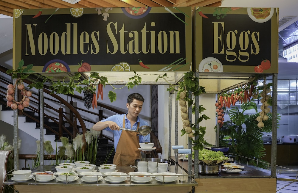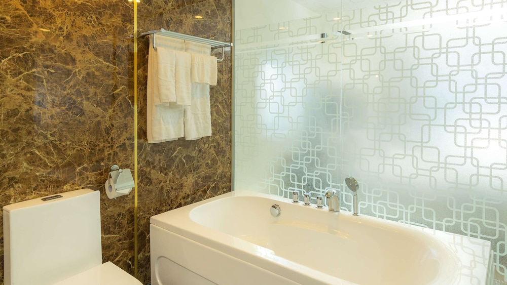 W czasie pobytu w obiekcie takim jak TND Hotel w mieście Nha Trang (Tran Phu Beach) zamieszkasz 4 minut piechotą od miejsca takiego jak Alexandre Yersin Museum i 6 minut piechotą od atrakcji takiej jak Khanh Hoa Museum. Hotel (przy plaży) znajduje się 0,6 km od atrakcji takiej jak Lotte Mart Nha Trang Gold Coast i 0,7 km od miejsca takiego jak Cho Dam (targ). Poczuj się jak w domu w 143 klimatyzowanych pokojach, których wyposażenie to minibar i telewizor płaskoekranowy. Bezpłatny bezprzewodowy dostęp do internetu zapewni łączność ze światem, a telewizja kablowa — rozrywkę. Prywatna łazienka — wyposażenie: wanny lub prysznice, markowe przybory toaletowe i bidety. Udogodnienia obejmują telefon oraz sejfy i biurka. Udogodnienia biznesowe to centrum biznesowe, bezpłatne czasopisma w holu oraz usługi pralni chemicznej. Jeżeli planujesz spotkanie w mieście Nha Trang, hotel oferuje centrum konferencyjne oraz sale konferencyjne o łącznej powierzchni 363 m kw. (3907 stopy kwadratowe). Płatne udogodnienia to transport z i na lotnisko. Dostępna jest także taka usługa jak bezpłatne parkowanie samodzielne. Dostępne udogodnienia rekreacyjne to basen odkryty i łaźnia parowa. Ten hotel oferuje udogodnienia takie jak bezpłatny bezprzewodowy dostęp do internetu, obsługa portierska i usługi weselne. Do dyspozycji gości: restauracja i kawiarnia. W obiekcie takim jak hotel do Twojej dyspozycji pozostaje także obsługa pokojowa (w określonych godzinach). Ożywcze napoje znajdziesz w jednym z lokali: basen z barem i 2 bary/salony klubowe.