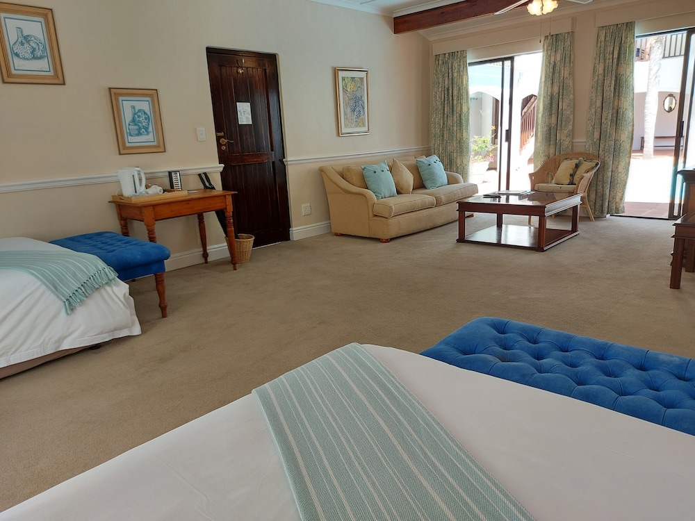 Udogodnienia biznesowe to usługi pralni chemicznej, przechowalnia bagażu oraz pralnia. Płatne udogodnienia to transport z i na lotnisko (całą dobę). Dostępna jest także taka usługa jak bezpłatne parkowanie samodzielne. Dostępne udogodnienia rekreacyjne to 2 baseny odkryte oraz centrum fitness. Ten dom na wsi w stylu kolonialnym oferuje również takie udogodnienia jak bezpłatny bezprzewodowy dostęp do internetu, obsługa portierska oraz teren piknikowy. Twój apetyt zaspokoi St James of Knysna, bar/salon klubowy, która specjalizuje się w kuchni takiej jak kuchnia lokalna i międzynarodowa i której podawane są pyszne obiad i kolacja. Możesz też zostać w pokoju i skorzystać z całodobowej obsługi pokojowej. Hotel oferuje bezpłatne śniadanie w formie bufetu codziennie od 8 do 10. Jakość oceniona przez Tourism Grading Council of South Africa (TGCSA) – oficjalną organizację ds. kontroli jakości w Republice Południowej Afryki.- Opłata za transport z lotniska i na lotnisko: 800 ZAR za pokój (w jedną stronę)