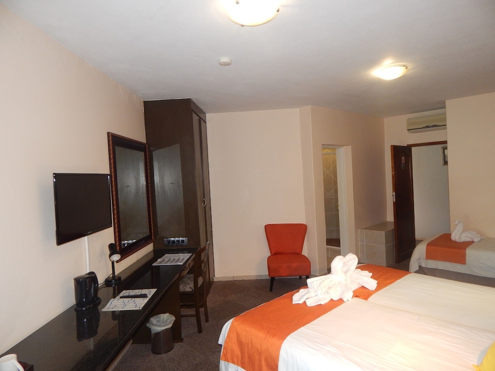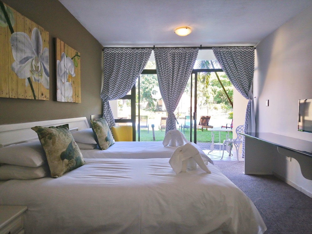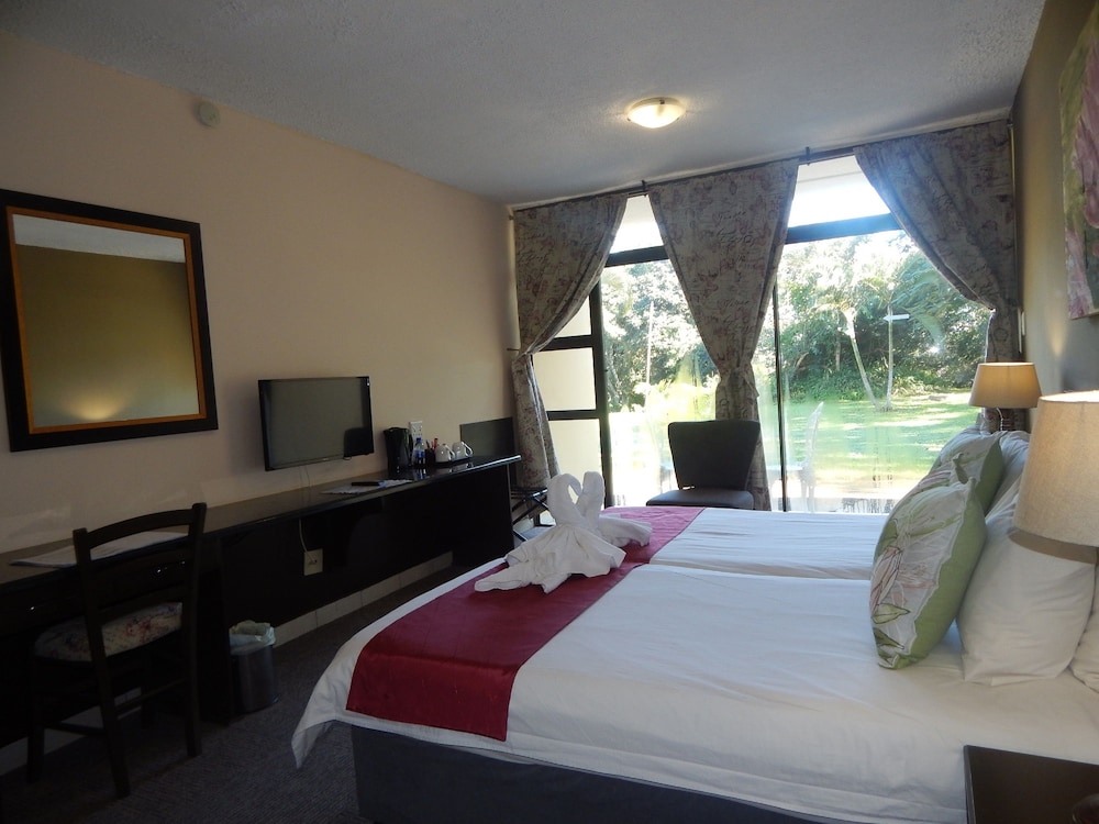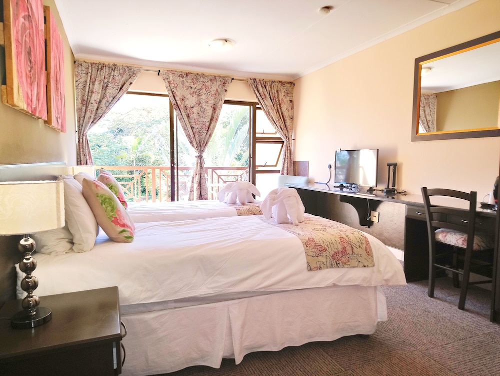 W czasie pobytu w obiekcie takim jak Elephant Lake Hotel w mieście St. Lucia, znajdziesz się 3,2 km od miejsca takiego jak Plaża w St. Lucia i 16,3 km od atrakcji takiej jak Klub golfowy Monzi. Hotel (z atmosferą przyjazną rodzinom) znajduje się 1 km od atrakcji takiej jak Galeria-St Lucia i 2,8 km od miejsca takiego jak Obszar ochrony przyrody iSimangaliso Wetland Park. Poczuj się jak w domu w 56 klimatyzowanych pokojach, których wyposażenie to telewizor LED. Do pokoju przylega balkon. Rozrywkę zapewni telewizja satelitarna. Prywatna łazienka — wyposażenie: wanny lub prysznice, prysznic z deszczownicą i bezpłatne przybory toaletowe. Udogodnienia biznesowe to ekspresowe wymeldowanie, usługi pralni chemicznej oraz recepcja całodobowa. Jeżeli planujesz spotkanie w mieście St. Lucia, hotel oferuje centrum konferencyjne oraz sala konferencyjna o łącznej powierzchni 130 m kw. (1399 stopy kwadratowe). Płatne udogodnienia to transport do przystani rejsowej i z przystani. Dostępna jest także taka usługa jak bezpłatne parkowanie samodzielne. Do pokoju przylegają taras na dachu i ogród, z których roztacza się piękny widok. Dostępne są również takie udogodnienia rekreacyjne, jak basen odkryty. Ten hotel oferuje udogodnienia takie jak bezpłatny bezprzewodowy dostęp do internetu, obsługa portierska i usługi niani (za dopłatą). Za opłatą do dyspozycji gości jest wahadłowy autobus kursujący do pobliskich atrakcji. Apetyt gości obiektu Elephant Lake Hotel zaspokoi restauracja. Codziennie hotel oferuje bezpłatne przyjęcie. Zrelaksuj się po całym dniu w barze/salonie klubowym. Śniadanie angielskie jest podawane codziennie od 7 do 9:30 za opłatą. Jakość oceniona przez Tourism Grading Council of South Africa (TGCSA) – oficjalną organizację ds. kontroli jakości w Republice Południowej Afryki.