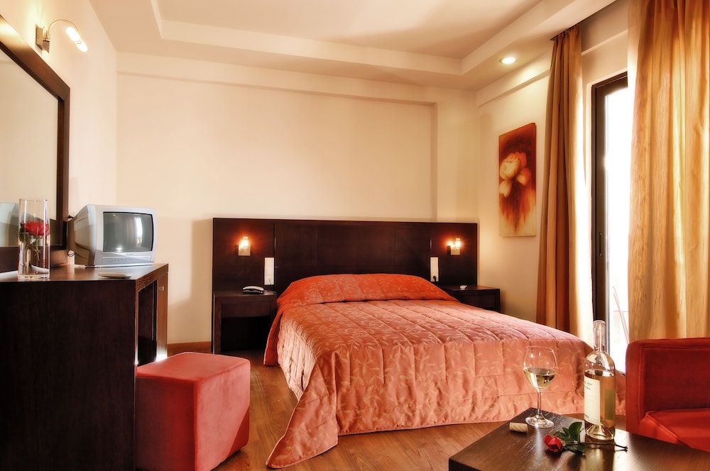 Eva Mare Hotel & Suites - Adults Only znajduje się w mieście Malewizi, na plaży i pięć minut piechotą od atrakcji takich jak Plaża Psaromoura i Prywatna Plaża Peninsula. Hotel (przy plaży) znajduje się 23,3 km od atrakcji takiej jak Port Heraklion i 22,8 km od miejsca takiego jak Muzeum Archeologiczne w Heraklionie. Poczuj się jak w domu w 53 klimatyzowanych pokojach, których wyposażenie to lodówka i telewizor LCD. Do pokoju przylega balkon. Bezpłatny bezprzewodowy dostęp do internetu zapewni łączność ze światem, a telewizja satelitarna — rozrywkę. Wyposażenie łazienki: bezpłatne przybory toaletowe i suszarki do włosów. Udogodnienia biznesowe to recepcja całodobowa, przechowalnia bagażu oraz biblioteka. Udogodnienia na miejscu to bezpłatne parkowanie samodzielne. Dostępne udogodnienia rekreacyjne to basen odkryty i centrum fitness. Ten hotel w stylu śródziemnomorskim oferuje również takie udogodnienia jak bezpłatny bezprzewodowy dostęp do internetu i obsługa portierska. W obiekcie takim jak hotel możesz znaleźć wiele miejsc, w których możesz coś zjeść, na przykład 2 restauracje i kawiarnię. Zakończ dzień pełen wrażeń drinkiem w barze/salonie klubowym, barze plażowym lub barze przy basenie. Hotel oferuje bezpłatne śniadanie w formie bufetu codziennie od 7:30 do 10.