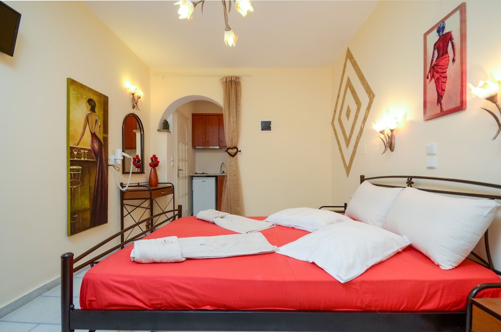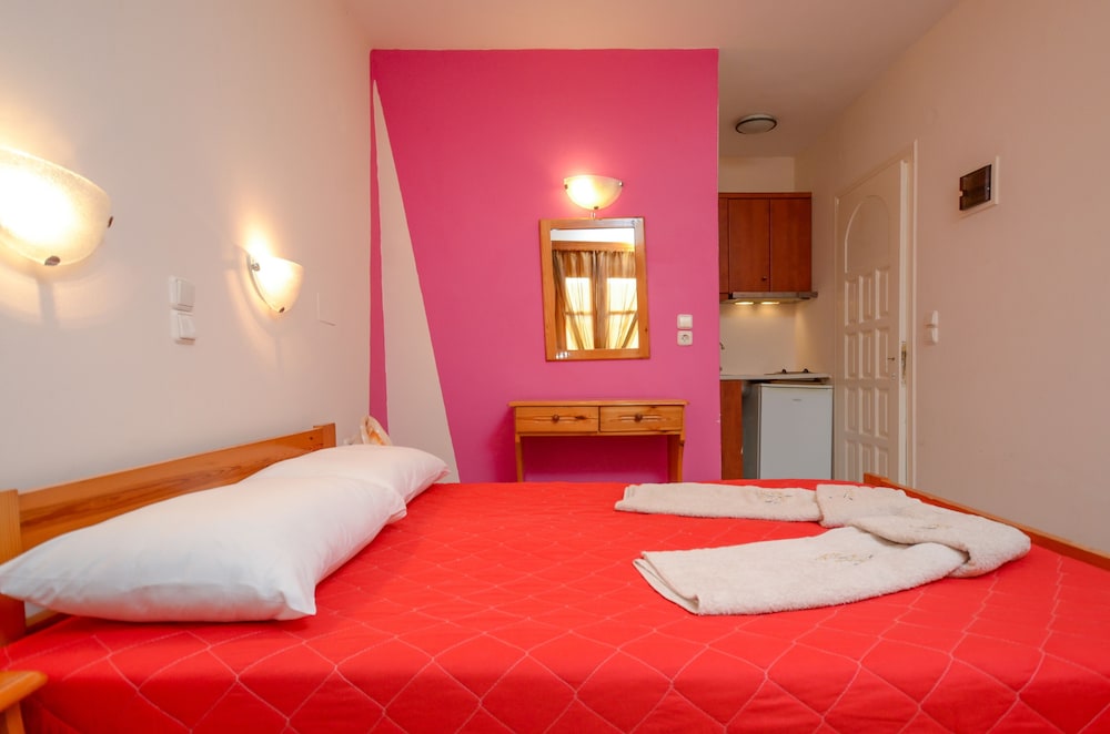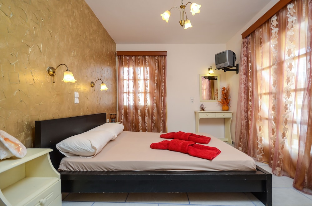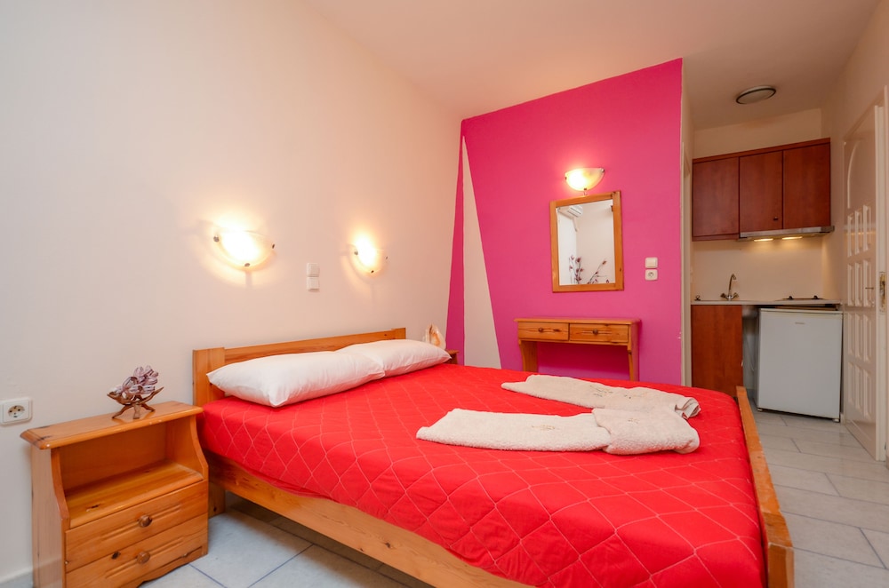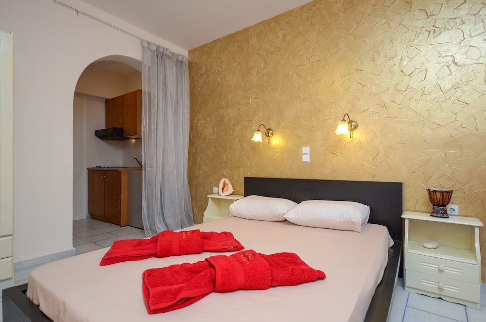 W czasie pobytu w obiekcie takim jak Kahlua Studios w mieście Naksos zamieszkasz niedaleko plaży, 3 minut piechotą od miejsca takiego jak Plaża Agios Prokopios i 3 minut samochodem od atrakcji takiej jak Plaża Plaka. Dom gościnny znajduje się 5,8 km od atrakcji takiej jak Port w Naksos i 37,8 km od miejsca takiego jak Port w Parikii. Poczuj się jak w domu w 7 klimatyzowanych pokojach, których wyposażenie to aneksy kuchenne. Do pokoju przylega umeblowany balkon. Bezpłatny bezprzewodowy dostęp do internetu zapewni łączność ze światem. Udogodnienia obejmują lodówki i zestawy do parzenia kawy i herbaty oraz sprzątanie codziennie. Odległości są podane z dokładnością do 0,1 kilometra.
