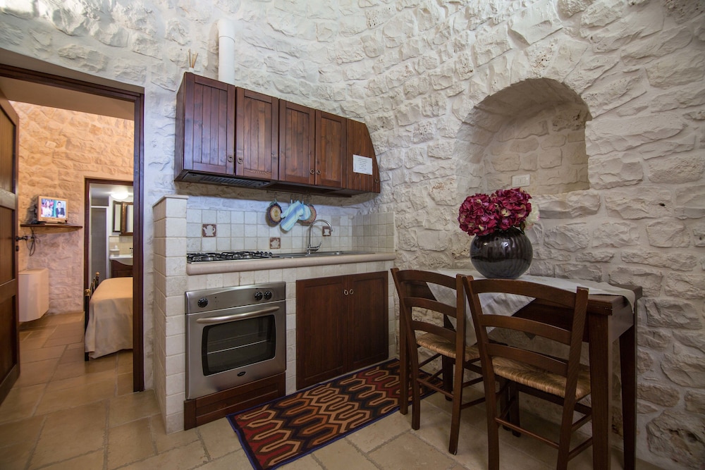 W czasie pobytu w obiekcie takim jak Trulli San Leonardo w mieście Alberobello znajdziesz się 10 minut samochodem od atrakcji takich jak Domki trullo w mieście Alberobello i Dolina Itria. Pensjonat B&B (z atmosferą przyjazną rodzinom) znajduje się 21,3 km od atrakcji takiej jak Zoo Safari i 2,2 km od miejsca takiego jak Trullo Sovrano. Poczuj się jak w domu w 4 oryginalnie udekorowane pokojach, których wyposażenie to kuchnie (lodówka i płyta kuchenna). Wyposażenie łóżek to pillowtop oraz kołdry puchowe i pościel premium. Do pokoju przylega patio. Bezpłatny bezprzewodowy dostęp do internetu zapewni łączność ze światem, a 32-cal. telewizor płaskoekranowy i telewizja kablowa — rozrywkę. Odległości są podane z dokładnością do 0,1 kilometra.