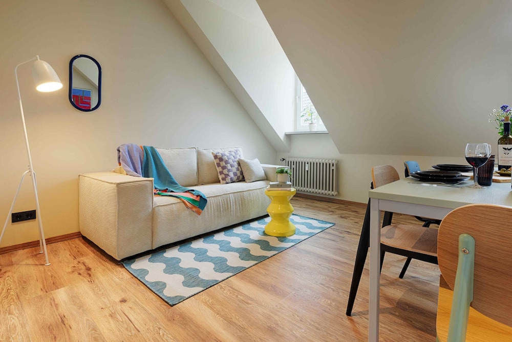 W czasie pobytu w obiekcie takim jak homie stay am Paradeplatz in der Würzburger Innenstadt zamieszkasz w samym centrum miasta Würzburg, pięć minut piechotą od miejsc takich jak Katedra w Würzburgu i Neumünster. Apartament znajduje się 0,5 km od atrakcji takiej jak Kościół Szpitalny i 0,6 km od miejsca takiego jak Państwowa Piwnica Win Würzburg. Poczuj się jak w domu w 5 oryginalnie udekorowane pokojach, których wyposażenie to kuchenka mikrofalowa i ekspres do kawy. Bezpłatny bezprzewodowy dostęp do internetu zapewni łączność ze światem, a 29-cal. telewizor płaskoekranowy i telewizja cyfrowa — rozrywkę. Wyposażenie łazienki: prysznic i suszarki do włosów. Udogodnienia obejmują czajnik elektryczny i żelazka i deski do prasowania oraz bezpłatne łóżeczka dziecięce na życzenie. Odległości są podane z dokładnością do 0,1 kilometra.