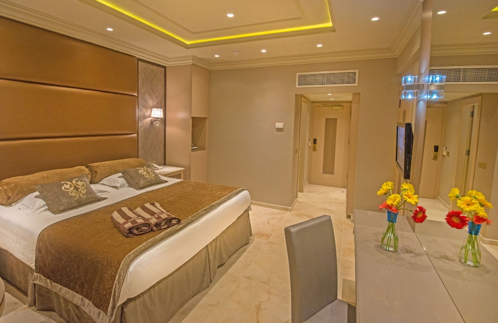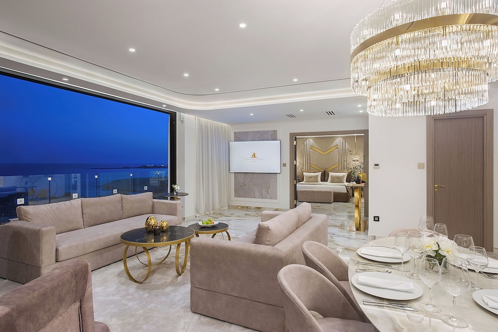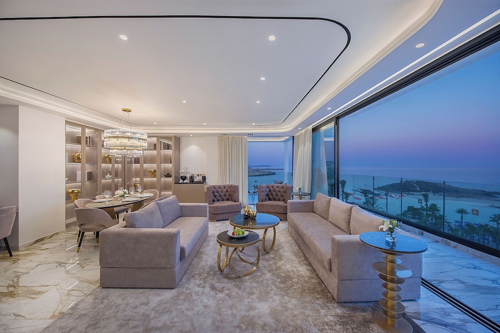 W czasie pobytu w obiekcie takim jak Adams Beach Hotel & Spa w mieście Ayia Napa (Nissi) znajdziesz się w odległości pięciu minut samochodem od atrakcji takich jak Plaża Nissi i Plaża w Makronissos. Hotel (przy plaży) znajduje się 17,3 km od atrakcji takiej jak Zatoka Drzew Figowych i 15,6 km od miejsca takiego jak Plaża Konnos Bay. Poczuj się jak w domu w 376 pokojach, których wyposażenie to ekspres do kawy i telewizor płaskoekranowy. Do pokoju przylega umeblowany balkon. Bezpłatny bezprzewodowy dostęp do internetu zapewni łączność ze światem, a telewizja satelitarna — rozrywkę. Wyposażenie łazienki: wanna połączona z prysznicem, bezpłatne przybory toaletowe i suszarki do włosów. Udogodnienia biznesowe to centrum biznesowe, usługi pralni chemicznej oraz recepcja całodobowa. Ten obiekt typu hotel zapewnia udogodnienia konferencyjne takie jak centrum konferencyjne i sala konferencyjna. Udogodnienia na miejscu to bezpłatne parkowanie samodzielne. Zrelaksuj się w spa, które oferuje masaż, zabiegi na ciało i zabiegi na twarz. Dostępne udogodnienia rekreacyjne to 5 baseny odkryte, leniwa rzeka oraz zjeżdżalnia wodna. Ten hotel oferuje również udogodnienia takie jak bezpłatny bezprzewodowy dostęp do internetu, obsługa portierska i usługi niani (za dopłatą). Zjedz coś w restuaracji Dionysos Open Air Tavern jednej z 5 restauracji w obiekcie takim jak hotel's lub zostań w pokoju i skorzystaj z całodobowej obsługi pokojowej. Ożywcze napoje znajdziesz w jednym z lokali: bar plażowy, bar przy basenie i 3 bary/salony klubowe. Hotel oferuje bezpłatne śniadanie pełne codziennie od 7 do 10. To miejsce jest nieczynne przez listopadzie, grudniu, styczniu, lutym i marcu.