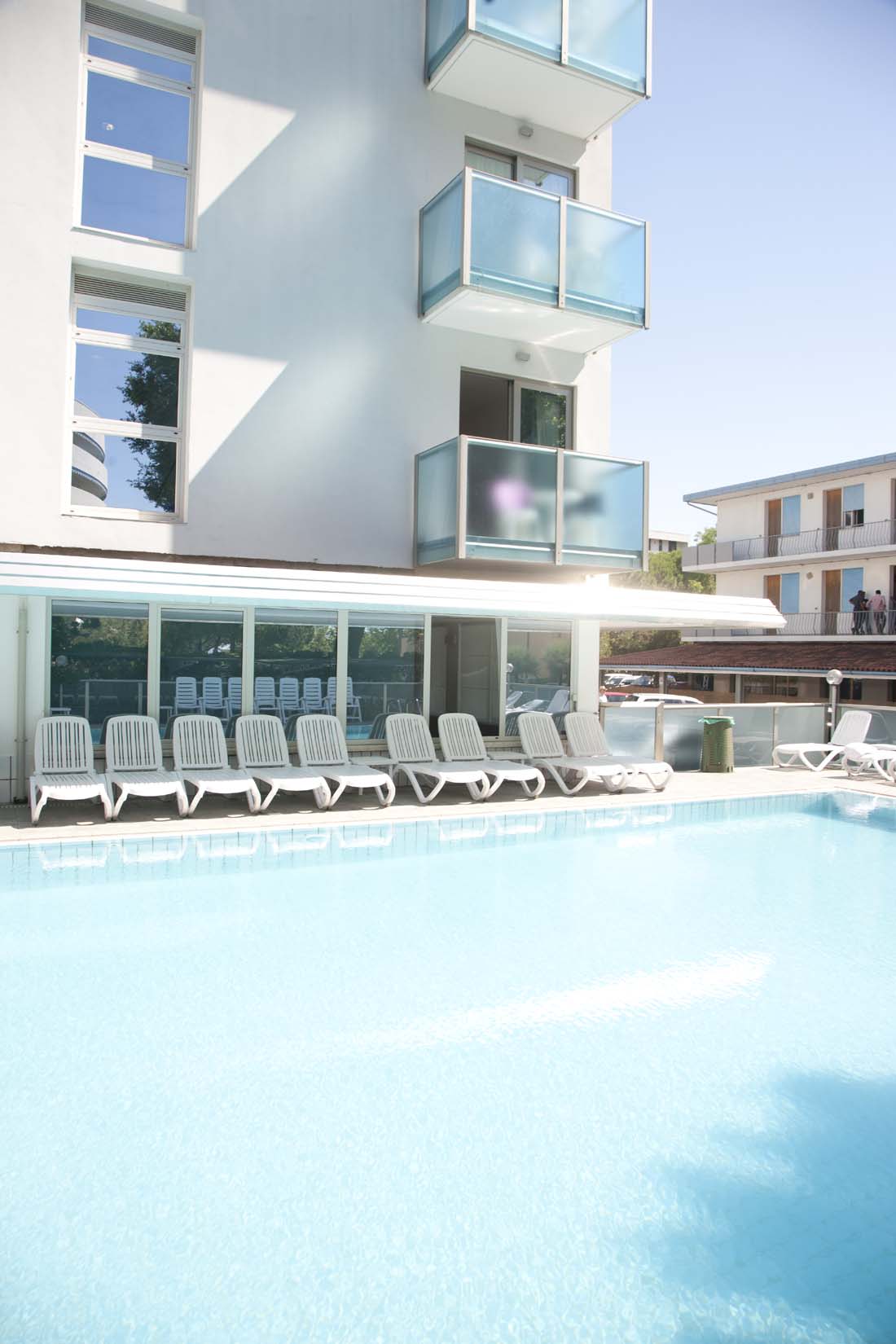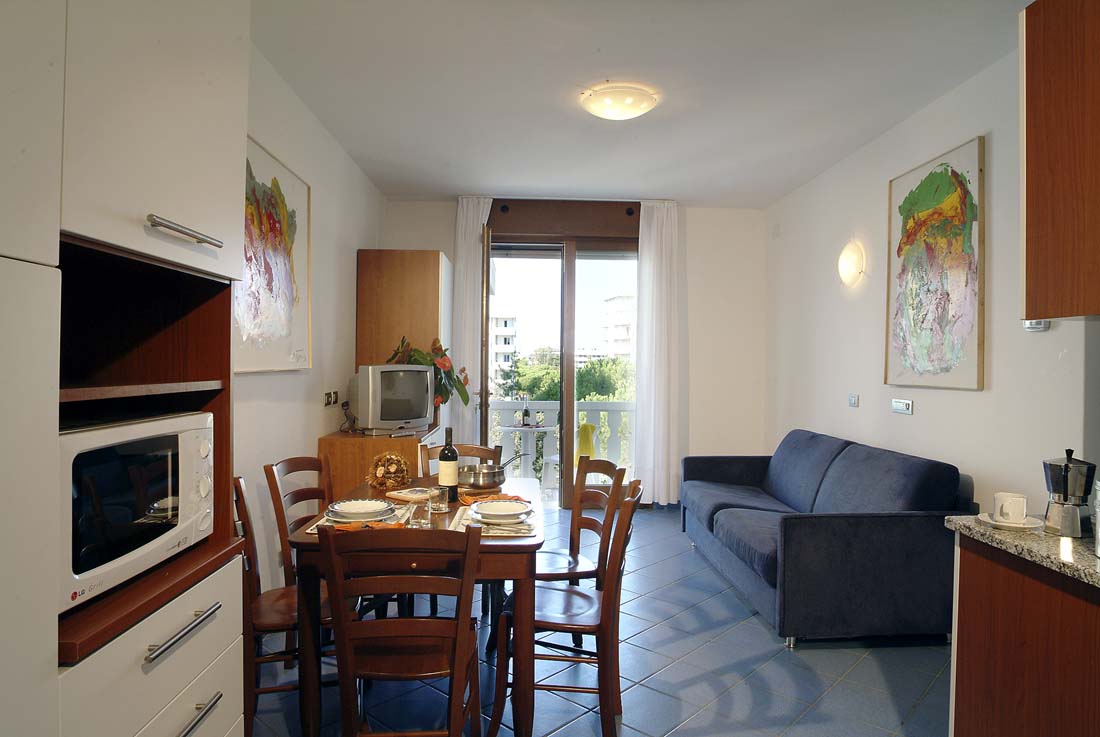 Wspaniała, długa i szeroka piaszczysta plaża oraz ulica handlowa, Corso Europa, leżą tuż obok budynku. Pensjonat Katja to doskonałe miejsce dla osób, które oczekują wszelkich udogodnień w pobliżu, by nie musieć korzystać z samochodu w czasie wakacji. Przy budynku znajduje się basen z brodzikiem dla dzieci. W cenie usługi plażowe: 1 parasol przeciwsłoneczny i 2 leżaki/apartament, co stanowi bardzo korzystną ofertę. Apartamenty są dobrze wyposażone i zadbane. Dostęp do Internetu przewodowego za pomocą kabla. Basen jest współdzielony z Aparthotel Katja, który mieści się w tym samym budynku, lecz posiada własne wejście.