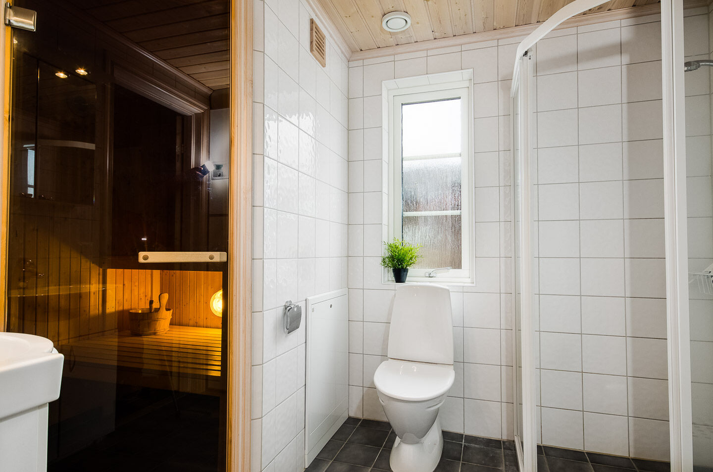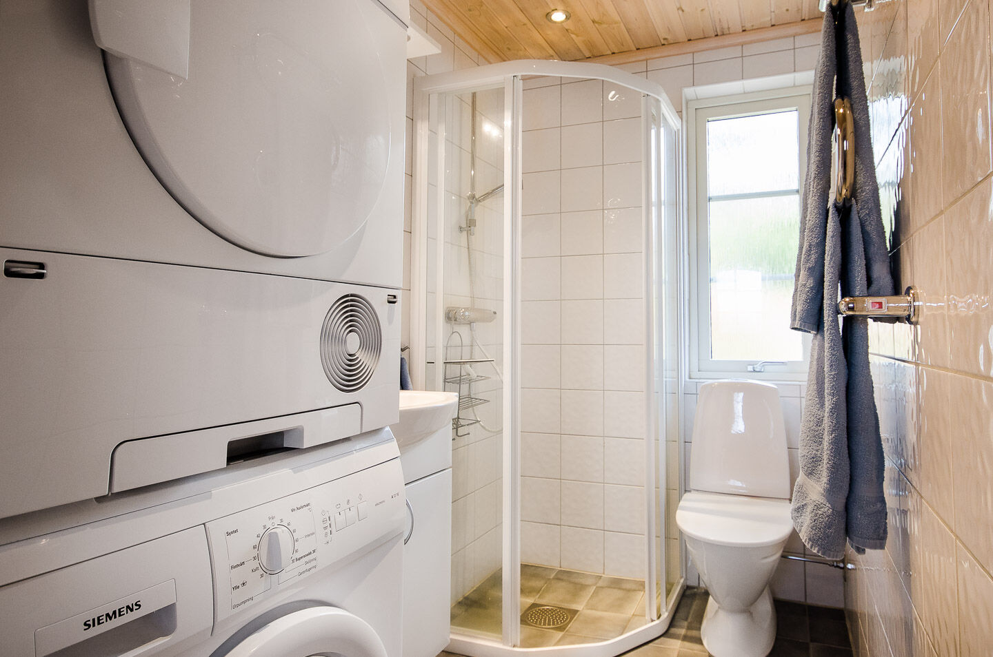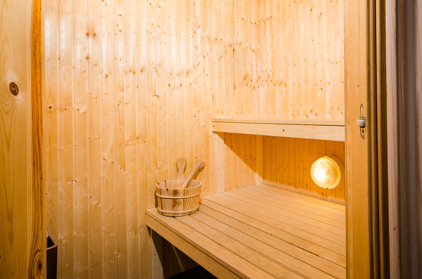 Dostępna jest sauna oraz dwa WC z prysznicami. Pralka i suszarka bębnowa.