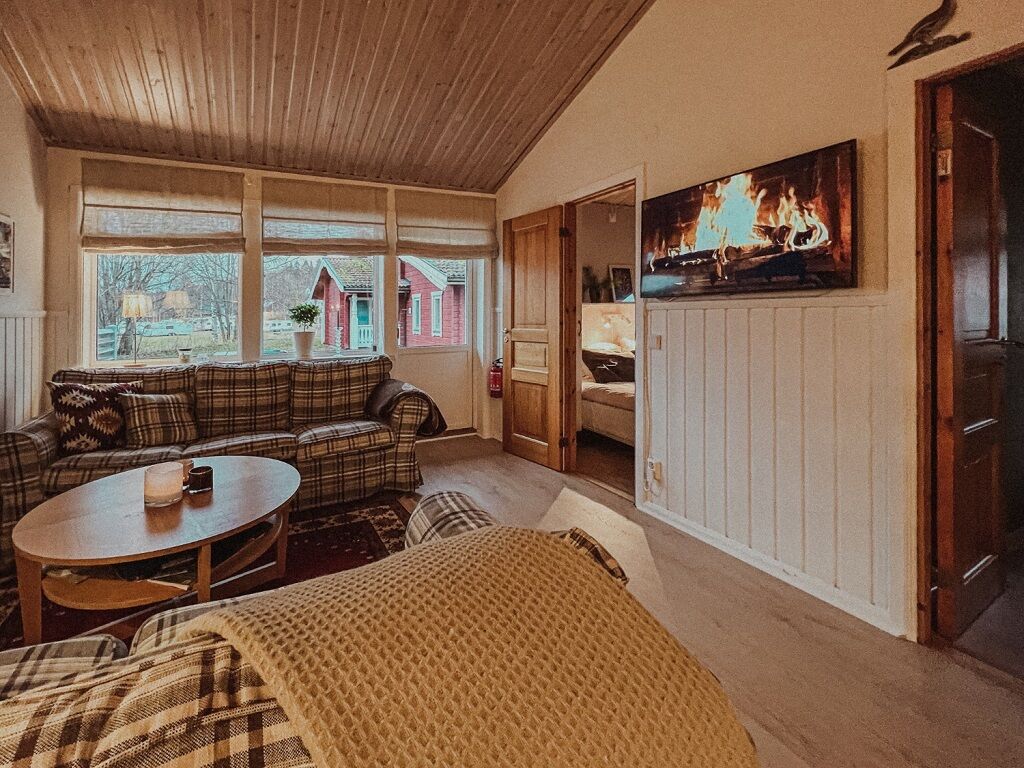 Urocze, drewniane apartamenty z czterema mieszkaniami w każdym domu. Mieszkanie ma 65 m² i oferuje 6+2 łóżka rozłożone na trzy sypialnie i antresolę. W kuchni/salonie znajduje się jadalnia, sofa, stolik kawowy oraz telewizor. Łazienka wyposażona jest w WC, prysznic i saunę.