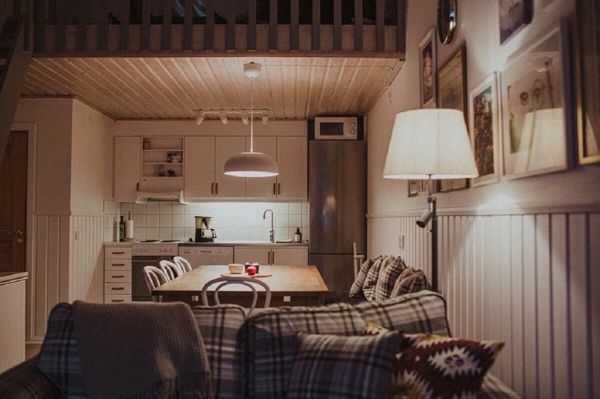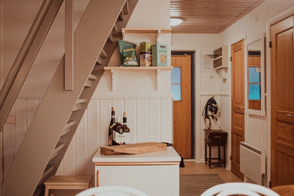 W apartamencie znajdują się dwie sypialnie na dolnym poziomie, jedna z podwójnym łóżkiem, a druga z łóżkiem piętrowym. Schody prowadzą na antresolę, gdzie znajduje się rozkładana sofa i telewizor oraz sypialnia z podwójnym łóżkiem.