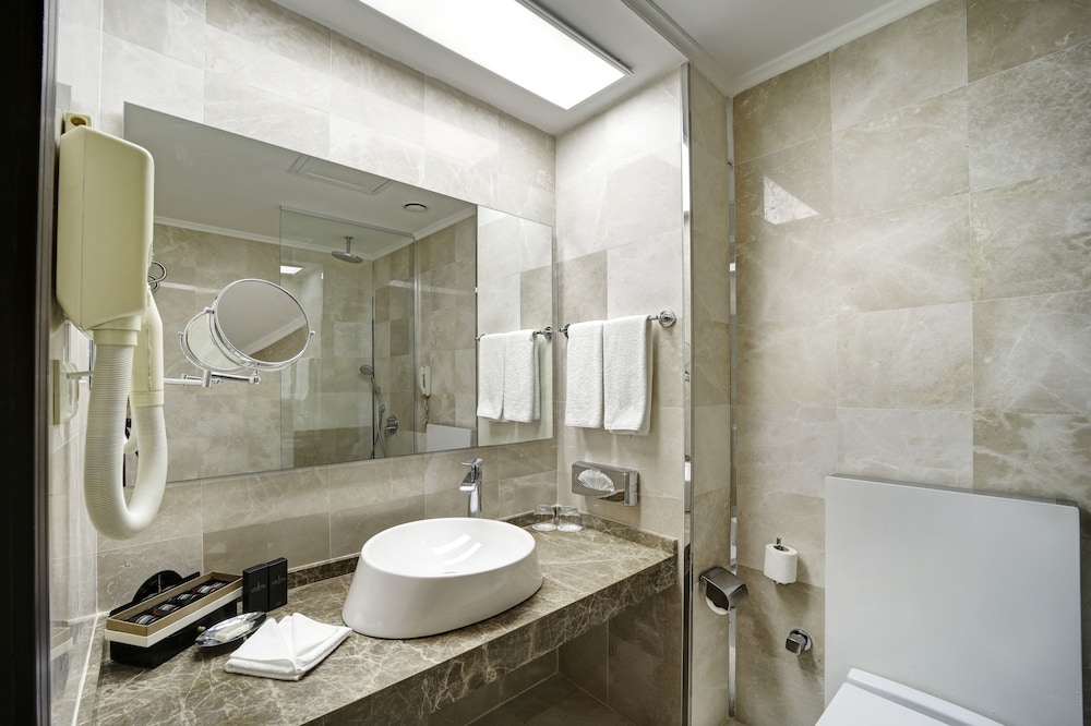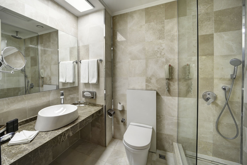 Udogodnienia biznesowe to centrum biznesowe, wynajem limuzyn i samochodów oraz ekspresowe wymeldowanie. Jeżeli planujesz spotkanie w mieście Istambuł, hotel oferuje pomieszczenia konferencyjne oraz 4 sale konferencyjne o łącznej powierzchni 275 m kw. (2960 stopy kwadratowe). Płatne udogodnienia to transport z i na lotnisko (całą dobę). Zrelaksuj się w spa, które oferuje masaż, zabiegi na ciało i zabiegi na twarz. Dostępne udogodnienia rekreacyjne to basen kryty, sauna oraz centrum fitness. Ten hotel oferuje udogodnienia takie jak bezpłatny bezprzewodowy dostęp do internetu, obsługa portierska i sklepy z pamiątkami i czasopismami. Przekąś coś w restauracji Ottoman Restaurant, jednej z 2 restauracji w obiekcie takim jak hotel. Możesz też zostać w pokoju i skorzystać z całodobowej obsługi pokojowej lub pójść po przekąskę do kawiarni. Ożywcze napoje znajdziesz w jednym z lokali: 2 bary/salony klubowe. Śniadanie w formie bufetu jest podawane codziennie od 7 do 10 za opłatą.- Opłata za śniadanie w formie bufetu: ok. 25 EUR za osobę dorosłą i 12 EUR za dziecko