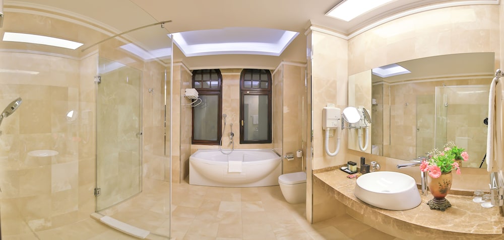 W czasie pobytu w obiekcie Legacy Ottoman Hotel znajdziesz się w samym centrum miasta takiego jak Istambuł, kroków od atrakcji takiej jak Nowy Meczet i pięć minut piechotą od miejsca takiego jak Plac Eminönü. Hotel (z atmosferą przyjazną rodzinom) znajduje się 0,8 km od atrakcji takiej jak Kryty Bazar i 1,3 km od miejsca takiego jak Bazar Egipski. Poczuj się jak w domu w 178 pokojach, których wyposażenie to minibar. Rozrywkę zapewni telewizja satelitarna. Wyposażenie łazienki: wanna połączona z prysznicem, bezpłatne przybory toaletowe i suszarki do włosów. Udogodnienia obejmują telefon oraz sejfy na laptopa i biurka. Odległości są podane z dokładnością do 0,1 kilometra.