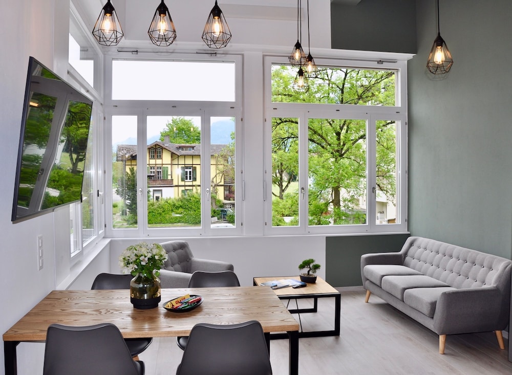 W czasie pobytu w obiekcie takim jak The Loft Interlaken znajdziesz się w samym centrum miasta Interlaken, 1 minut samochodem od atrakcji takiej jak Mystery Rooms i 5 minut od miejsca takiego jak Jezioro Brienz. Apartament znajduje się 2,9 km od atrakcji takiej jak JezioroThun i 27,9 km od miejsca takiego jak Stacja First. Poczuj się jak w domu w 2 klimatyzowanych pokojach, których wyposażenie to podgrzewane podłogi i Telewizory Smart TV. Kuchnie — wyposażenie: lodówka, piekarniki i płyta kuchenna. Bezpłatny bezprzewodowy dostęp do internetu zapewni łączność ze światem, a 55-cal. telewizor płaskoekranowy i telewizja cyfrowa — rozrywkę. Udogodnienia obejmują oddzielne strefy wypoczynkowe i kuchenki mikrofalowe. Odległości są podane z dokładnością do 0,1 kilometra.