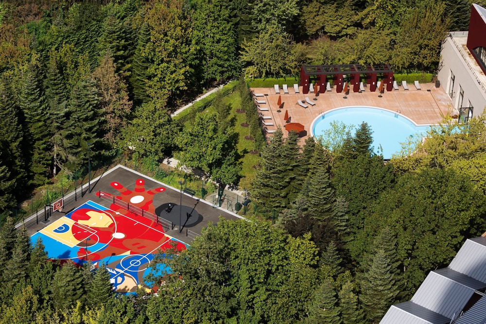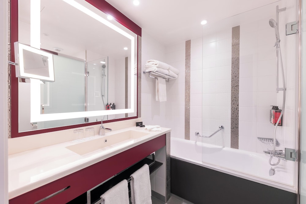 Udogodnienia biznesowe to ekspresowe zameldowanie, ekspresowe wymeldowanie oraz bezpłatne czasopisma w holu. Bezpłatne udogodnienia to odbiór gości z dworca kolejowego i w wyznaczonych godzinach. Dostępna jest także taka usługa jak bezpłatne parkowanie samodzielne. Dostępne udogodnienia rekreacyjne to siłownia, basen kryty oraz jacuzzi. Ten hotel w stylu art deco oferuje również takie udogodnienia jak bezpłatny bezprzewodowy dostęp do internetu, obsługa portierska oraz sala/salon gier. Do dyspozycji gości jest bezpłatny wahadłowy autobus umożliwiający dojazd do parku rozrywki i skorzystanie z tych opcji: wcześniejsze wejście do parku rozrywki i spotkanie z postaciami w parku rozrywki. Zachwyć się kuchnią taką jak kuchnia międzynarodowa w restauracji Downtown restaurant jednej z 2 restauracji w obiekcie takim jak hotel. Możesz też zostać w pokoju i skorzystać z całodobowej obsługi pokojowej. Zrelaksuj się po całym dniu w barze/salonie klubowym. Śniadanie w formie bufetu jest podawane codziennie od 7 do 10 za opłatą. Liczba gwiazdek tego obiektu przyznana została przez Francuską Agencję Rozwoju Turystyki — ATOUT France. Ten obiekt będzie przechodzić renowację w okresie od 2 marca 2026 do 1 maja 2026 (data zakończenia może ulec zmianie). Renowacja zostanie przeprowadzona w następującym zakresie:- Basen pływacki