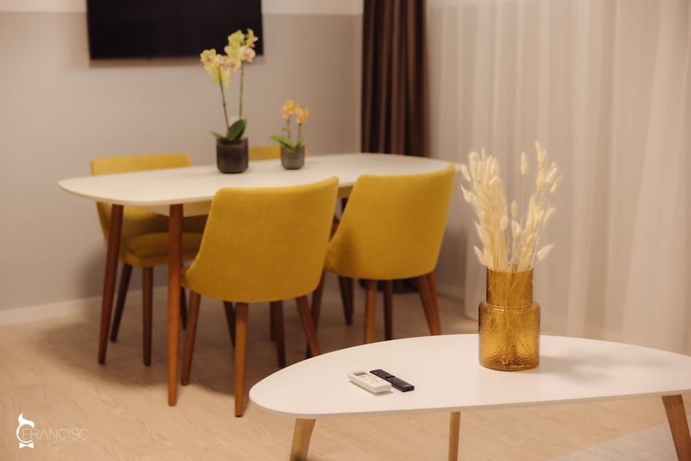 W czasie pobytu w obiekcie takim jak ZEN Garden Apartments w mieście Cluj-Napoca (Zorilor) zamieszkasz 15 minut piechotą od atrakcji takich jak Ogród Botaniczny i Instytut Onkologii "Prof. Dr. Ion Chiricuta" Cluj-Napoca. Aparthotel znajduje się 1,5 km od atrakcji takiej jak Pałac Sebestyen i 1,6 km od miejsca takiego jak Uniwersytet Babes-Bolyai. Poczuj się jak w domu w 8 oryginalnie udekorowane pokojach, których wyposażenie to podgrzewane podłogi i Telewizory Smart TV. Do pokoju przylega balkon. Kuchnie — wyposażenie: piekarniki, płyta kuchenna i kuchenka mikrofalowa. Bezpłatny bezprzewodowy dostęp do internetu zapewni łączność ze światem, a telewizja kablowa — rozrywkę. Płatne udogodnienia to transport z i na lotnisko (całą dobę). Dostępna jest także taka usługa jak bezpłatne parkowanie samodzielne. Do pokoju przylega ogród, z którego roztacza się piękny widok.