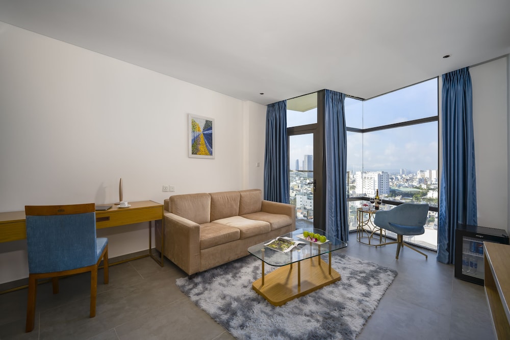 W czasie pobytu w obiekcie takim jak San Marino Boutique Danang w mieście Da Nang (Sơn Trà) znajdziesz się w odległości pięciu minut samochodem od atrakcji takich jak Rzeka Han i Most Smoka. Hotel (z atmosferą przyjazną rodzinom) znajduje się 2,5 km od atrakcji takiej jak Plaża My Khe i 2,2 km od miejsca takiego jak Katedra w Đà Nẵng. Poczuj się jak w domu w 80 oryginalnie umeblowane pokojach, których wyposażenie to lodówka i telewizor LED. Wyposażenie łóżek to pillowtop oraz pościel premium. Bezpłatny bezprzewodowy dostęp do internetu zapewni łączność ze światem, a telewizja satelitarna — rozrywkę. Wyposażenie łazienki: wanny lub prysznice, markowe przybory toaletowe i suszarki do włosów. Udogodnienia biznesowe to całodobowe centrum biznesowe, bezpłatne czasopisma w holu oraz usługi pralni chemicznej. Jeżeli planujesz spotkanie w mieście Da Nang, hotel oferuje pomieszczenia konferencyjne oraz sala konferencyjna o łącznej powierzchni 150 m kw. (1615 stopy kwadratowe). Płatne udogodnienia to transport z i na lotnisko (całą dobę). Dostępna jest także taka usługa jak bezpłatne parkowanie przez obsługę. Dostępne udogodnienia rekreacyjne to basen odkryty i całodobowe centrum fitness. Ten hotel oferuje udogodnienia takie jak bezpłatny bezprzewodowy dostęp do internetu, obsługa portierska i sklepy z pamiątkami i czasopismami. Za opłatą do dyspozycji gości jest wahadłowy autobus kursujący na plażę. Spróbuj dań kuchni takiej jak kuchnia lokalna i międzynarodowa, które serwuje Titano, restauracja, gdzie znajduje się doskonale wyposażony bar/salon klubowy. Możesz też zostać w pokoju i skorzystać z całodobowej obsługi pokojowej. Podczas kąpieli ożywcze napoje znajdziesz w barze przy basenie, w tym obiekcie typu hotel.