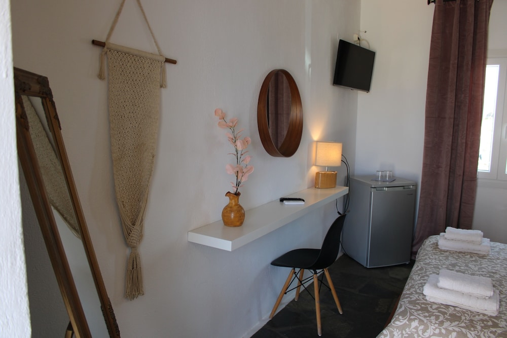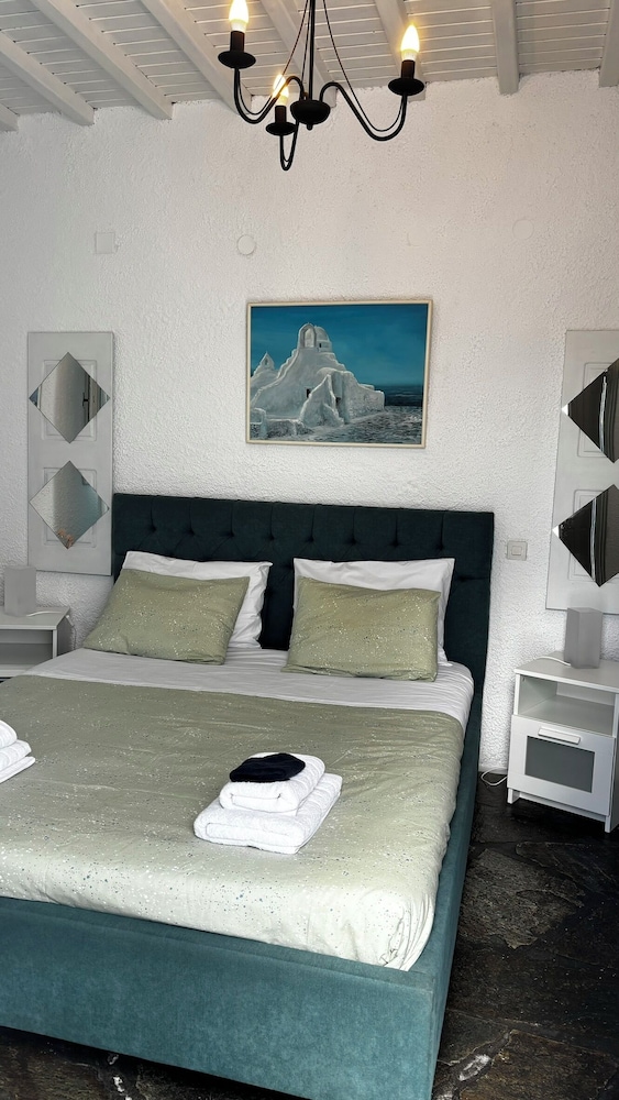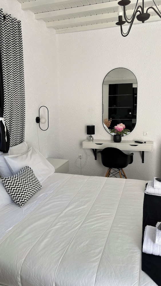 W czasie pobytu w obiekcie takim jak Vougli View w mieście Mikonos zamieszkasz pięć minut samochodem od atrakcji takich jak Nowy port w Mykonos i Wiatraki na Mykonos. Dom gościnny znajduje się 4,7 km od atrakcji takiej jak Paradise Beach (plaża) i 1,7 km od miejsca takiego jak Stary port w Mykonos. Poczuj się jak w domu w 8 klimatyzowanych pokojach, których wyposażenie to telewizor płaskoekranowy. Do pokoju przylega umeblowany balkon lub patio. Bezpłatny bezprzewodowy dostęp do internetu zapewni łączność ze światem. Prywatna łazienka — wyposażenie: prysznic, prysznic z deszczownicą i suszarki do włosów. Odległości są podane z dokładnością do 0,1 kilometra.