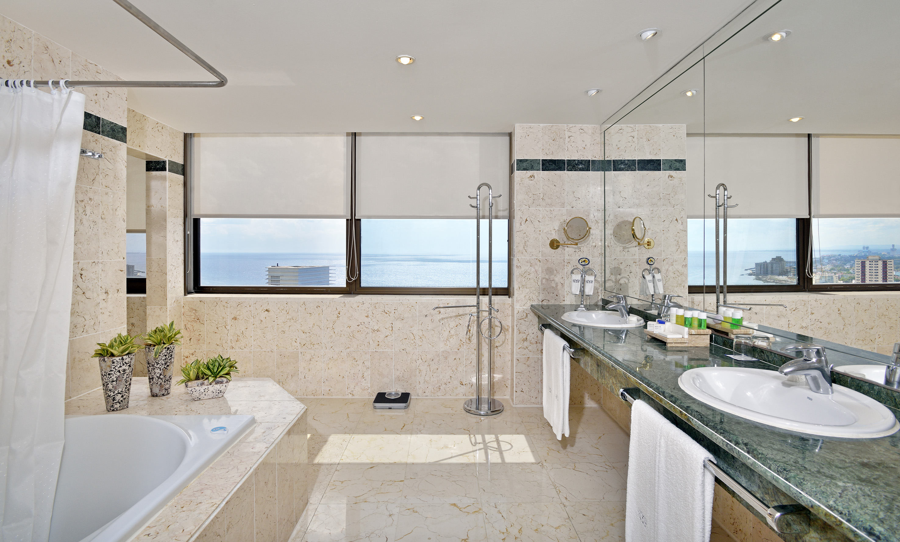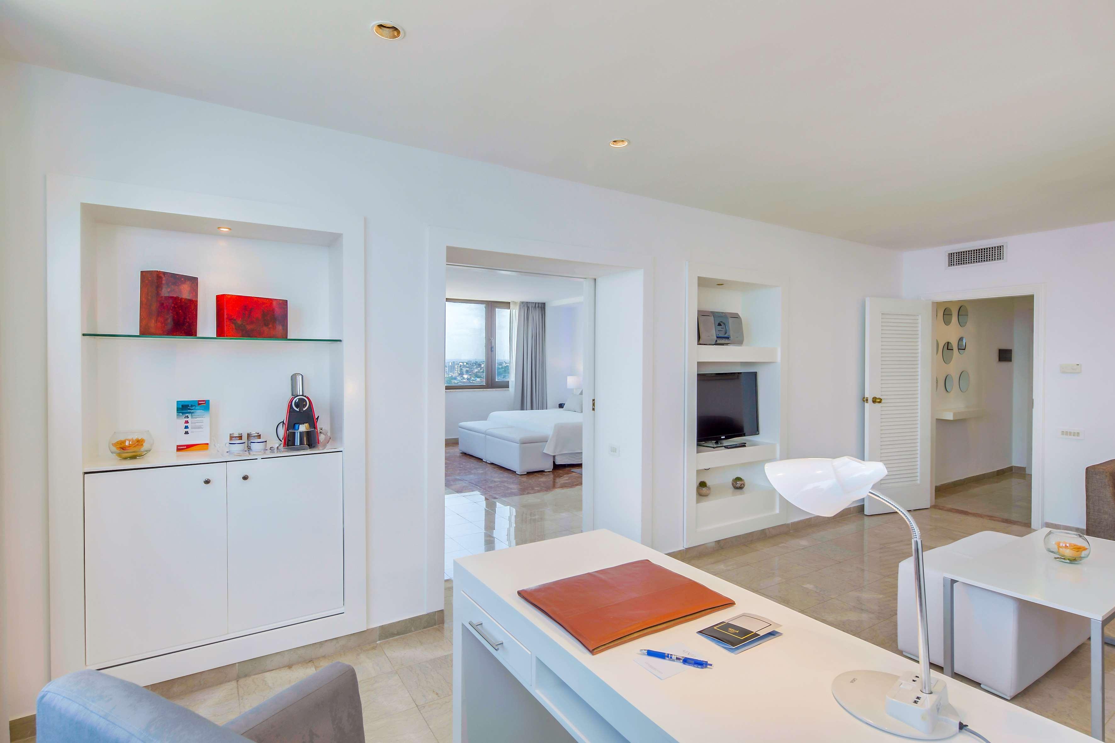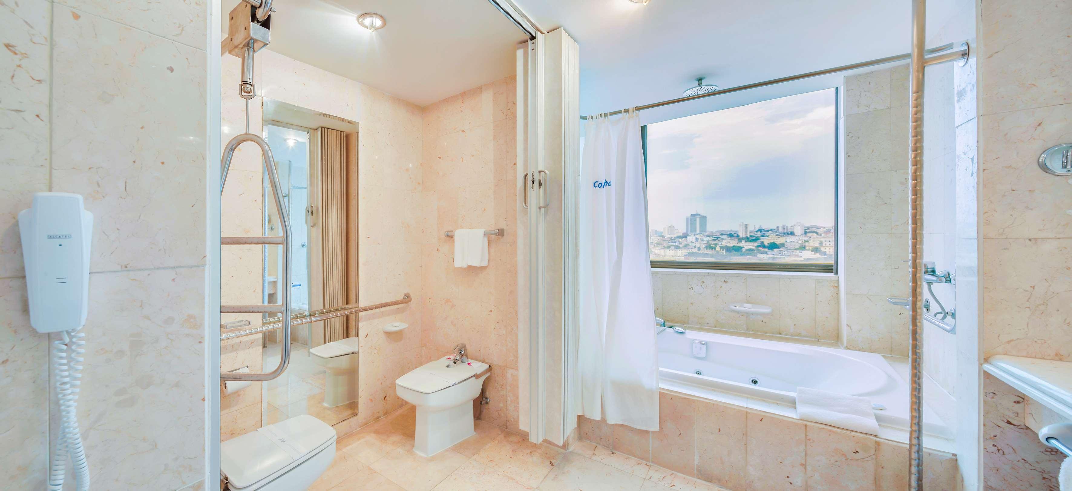 This hotel is situated in the centre of Havana, near Malecon. Just few kilometres away guests can find Revolution Square, the Old Town and the Botanic Gardens. Pabexpo is in around 11 km and the nearest beach is 25 km away. This luxury hotel offers a safe, shops and a café. Further facilities in the air-conditioned establishment include 5 bars, a nightclub and 5 restaurants. Conference facilities and public Internet access are also on offer. The air-conditioned rooms all come with an en suite bathroom and well-equipped living area. Further amenities include a minibar, a double or king-size bed and a breakfast table with chairs in the rooms. Guests are also offered a swimming pool, a hot tub and a sauna. Sports options include squash, aerobics and a gym. In the buffet restaurant Plaza Habana guests can enjoy breakfast, lunch and dinner with international dishes.