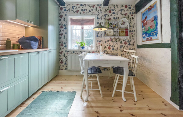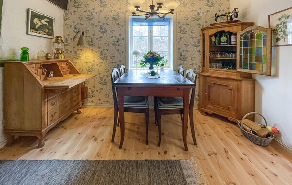 Witamy w tym uroczym szwedzkim domu wakacyjnym. Położony w pobliżu lasu i pól, oferuje wakacje pełne relaksu, świeżego powietrza i niezapomnianych wrażeń. Historyczna atmosfera i piękne meble sprawią, że poczujesz się jak w domu. Zrelaksuj się i przygotuj pyszne śniadanie w rustykalnej kuchni. Stół kuchenny i stół jadalny w salonie są idealne na obfite rodzinne posiłki i przytulne wieczory gier. Rozsiądź się wygodnie na jednej z wielu przytulnych sof i poczytaj dzieciom dobrą książkę.