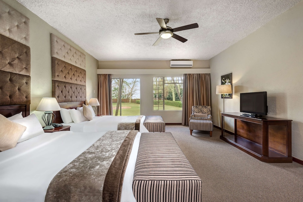 Udogodnienia biznesowe to bezpłatny przewodowy dostęp do internetu, centrum biznesowe oraz ekspresowe zameldowanie. Ten obiekt typu hotel zapewnia udogodnienia konferencyjne takie jak centrum konferencyjne i sala konferencyjna. Płatne udogodnienia to transport z i na lotnisko. Dostępna jest także taka usługa jak bezpłatne parkowanie samodzielne. Do pokoju przylegają taras na dachu i ogród, z których roztacza się piękny widok. Dostępne są również takie udogodnienia rekreacyjne, jak basen odkryty. Ten hotel oferuje takie udogodnienia jak bezpłatny bezprzewodowy dostęp do internetu, obsługa portierska i usługi niani (za dopłatą). Za opłatą do dyspozycji gości jest wahadłowy autobus kursujący do pobliskich atrakcji. W obiekcie takim jak hotel do dyspozycji gości są restauracja, a także obsługa pokojowa (w określonych godzinach). Codziennie hotel oferuje bezpłatne przyjęcie. Po całym dniu zrelaksujesz się w naszym barze/salonie klubowym lub barze przy basenie. Śniadanie w formie bufetu jest podawane codziennie od 6:30 do 10 za opłatą. Jakość oceniona przez Tourism Grading Council of South Africa (TGCSA) – oficjalną organizację ds. kontroli jakości w Republice Południowej Afryki.
