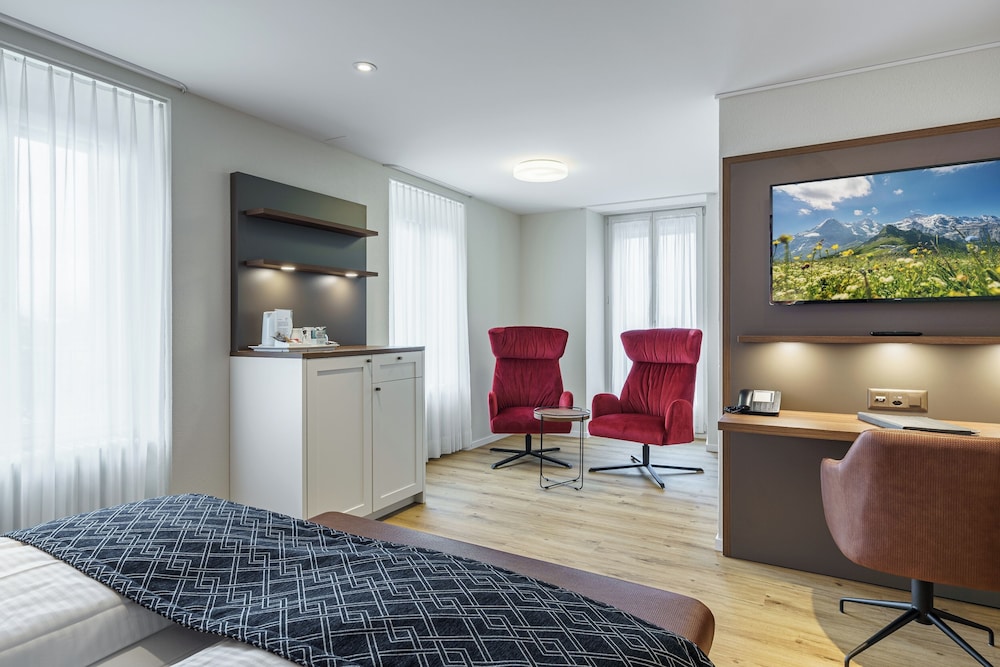 Udogodnienia biznesowe to ekspresowe wymeldowanie, bezpłatne czasopisma w holu oraz personel wielojęzyczny. Udogodnienia na miejscu to bezpłatne parkowanie samodzielne. Do pokoju przylegają taras i ogród, z których roztacza się piękny widok. Dostępne są również takie udogodnienia rekreacyjne, jak rowery do wypożyczenia. Ten hotel oferuje takie udogodnienia jak bezpłatny bezprzewodowy dostęp do internetu, obsługa portierska i kominek w holu. Zrelaksuj się po całym dniu w barze/salonie klubowym. Hotel oferuje bezpłatne śniadanie w formie bufetu codziennie od 7 do 10. Hotelstars Union dokonuje oficjalnej klasyfikacji struktur noclegowych w tym kraju (Szwajcaria). Klasyfikacja tego obiektu to 4 stars.W obiekcie należy dokonać następujących opłat. Opłaty mogą obejmować obowiązujące podatki: