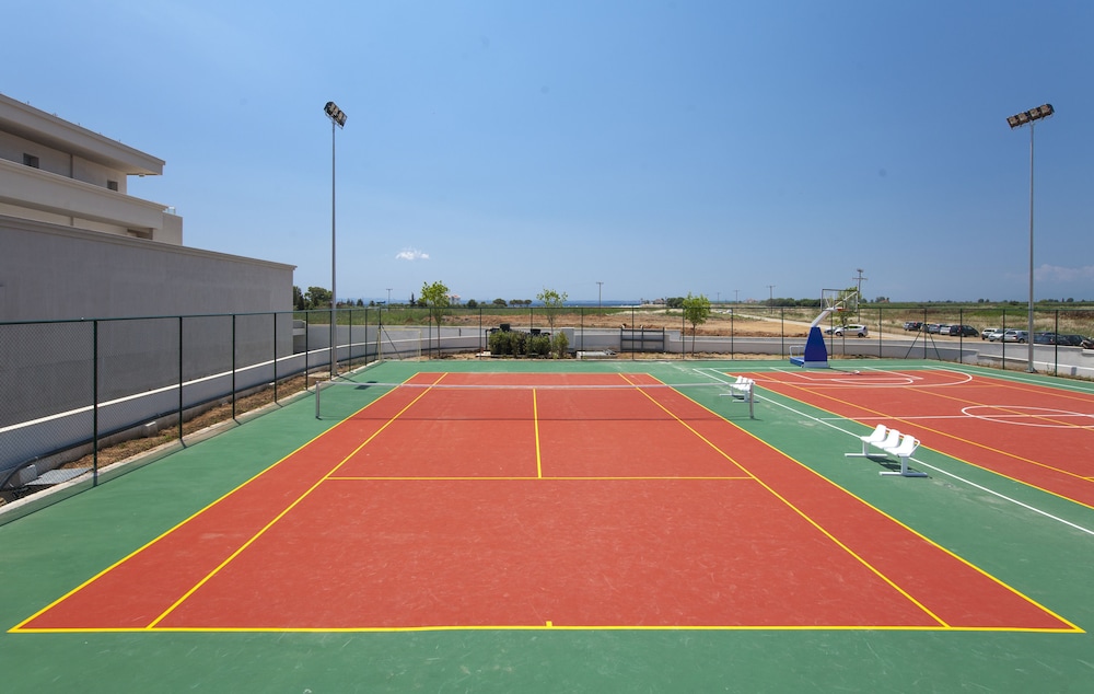 W czasie pobytu w obiekcie takim jak Blue Lagoon Princess - All Inclusive w mieście Polijiros znajdziesz się na plaży i 7 minut samochodem od atrakcji takiej jak Starożytny Olint. Obiekt (all inclusive) znajduje się 5,9 km od atrakcji takiej jak Plaża Jerakini i 6,7 km od miejsca takiego jak Agjio Mama. Poczuj się jak w domu w 286 pokojach, których wyposażenie to lodówka i telewizor płaskoekranowy. Do pokoju przylega umeblowany balkon lub patio. Bezpłatny przewodowy i bezprzewodowy dostęp do internetu zapewni łączność ze światem, a telewizja satelitarna — rozrywkę. Prywatna łazienka — wyposażenie: wanna połączona z prysznicem, bezpłatne przybory toaletowe i suszarki do włosów. Udogodnienia biznesowe to bezpłatny przewodowy dostęp do internetu, komputer stacjonarny oraz usługi pralni chemicznej. Ten obiekt typu obiekt zapewnia udogodnienia konferencyjne takie jak pomieszczenia konferencyjne i sala konferencyjna. Płatne udogodnienia to transport z i na lotnisko (całą dobę). Dostępna jest także taka usługa jak bezpłatne parkowanie samodzielne. Zrelaksuj się w spa, które oferuje masaż, zabiegi na ciało i zabiegi na twarz. Dostępne udogodnienia rekreacyjne to 4 baseny odkryte, odkryte korty tenisowe oraz centrum fitness. Ten obiekt oferuje udogodnienia takie jak bezpłatny bezprzewodowy dostęp do internetu, obsługa portierska i salon fryzjerski. Jest to obiekt all inclusive. W cenie wliczone są posiłki i napoje w restauracjach obiektu. Mogą podlegać opłacie posiłki w niektórych restauracjach, posiłki i dania specjalne, niektóre napoje i inne udogodnienia.