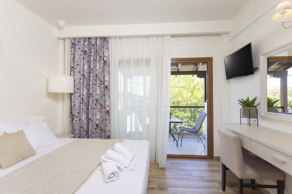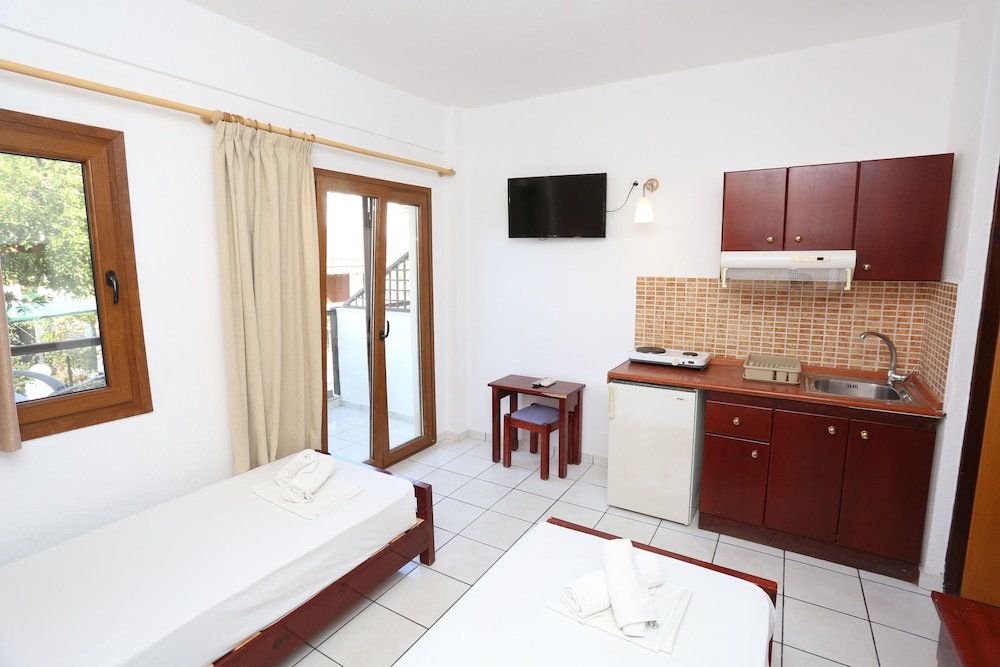 W czasie pobytu w obiekcie takim jak Hotel Magdalena w mieście Kassandra znajdziesz się niedaleko plaży, 3 minut piechotą od miejsca takiego jak Molo w Pefkochori. Hotel znajduje się 19 km od atrakcji takiej jak Plaża Kalithea i 3,4 km od miejsca takiego jak Plaża w Chaniotis. Poczuj się jak w domu w 15 klimatyzowanych pokojach, których wyposażenie to lodówka i telewizor LCD. Do pokoju przylega umeblowany balkon. Bezpłatny bezprzewodowy dostęp do internetu zapewni łączność ze światem, a telewizja cyfrowa — rozrywkę. Prywatna łazienka — wyposażenie: prysznic, bezpłatne przybory toaletowe i suszarki do włosów. Udogodnienia biznesowe to ekspresowe zameldowanie, przechowalnia bagażu oraz biblioteka. Płatne udogodnienia to transport z i na lotnisko (całą dobę). Dostępna jest także taka usługa jak bezpłatne parkowanie samodzielne. Do pokoju przylegają taras i ogród, z których roztacza się piękny widok. Dostępne są również takie udogodnienia, jak bezpłatny bezprzewodowy dostęp do internetu. Ten hotel oferuje również udogodnienia takie jak obsługa portierska, salon fryzjerski i telewizor w holu. Hotel zaprasza do wykorzystania takich udogodnień jak kawiarnia, a także obsługa pokojowa. Ożywcze napoje znajdziesz w jednym z lokali: bar/salon klubowy. Śniadanie na zamówienie jest podawane codziennie od 9 do 11:30 za opłatą.