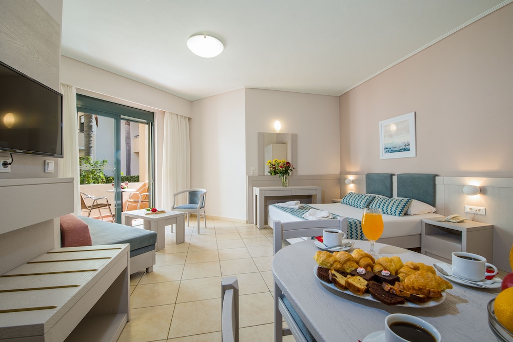W czasie pobytu w obiekcie takim jak Creta Palm Hotel w mieście Chania zamieszkasz blisko centrum konferencyjnego, pięć minut samochodem od atrakcji takich jak Plaża w Aja Marina i Plaża Beach. Hotel (przy plaży) znajduje się 14,9 km od atrakcji takiej jak Port w Sudzie i 8,6 km od miejsca takiego jak Plaża w Nea Chora. Poczuj się jak w domu w 143 pokojach, których wyposażenie to aneksy kuchenne (lodówka i płyta kuchenna). W pokojach znajduje się sofa, a wyposażenie łóżek to pillowtop oraz pościel z egipskiej bawełny. Do pokoju przylega balkon. Bezpłatny, przewodowy dostęp do internetu zapewni łączność ze światem, a telewizor LCD i satelitarna — rozrywkę. Udogodnienia biznesowe to ekspresowe zameldowanie, ekspresowe wymeldowanie oraz usługi pralni chemicznej. Udogodnienia na miejscu to bezpłatne parkowanie samodzielne. Zrelaksuj się w spa o pełnym zakresie usług. Dostępne udogodnienia rekreacyjne to jacuzzi, sauna oraz całodobowe centrum fitness. Ten hotel oferuje również udogodnienia takie jak bezpłatny bezprzewodowy dostęp do internetu, usługi niani (za dopłatą) i sala/salon gier. Twój apetyt zaspokoi restauracja Main Restaurant, restauracja tuż przy przy basenie, gdzie możesz podziwiać widok na basen. Jedzenie i picie serwuje także kawiarnia. Ożywcze napoje znajdziesz w jednym z lokali: bar przy basenie i 2 bary/salony klubowe. Hotel oferuje bezpłatne śniadanie w formie bufetu codziennie od 7 do 10.