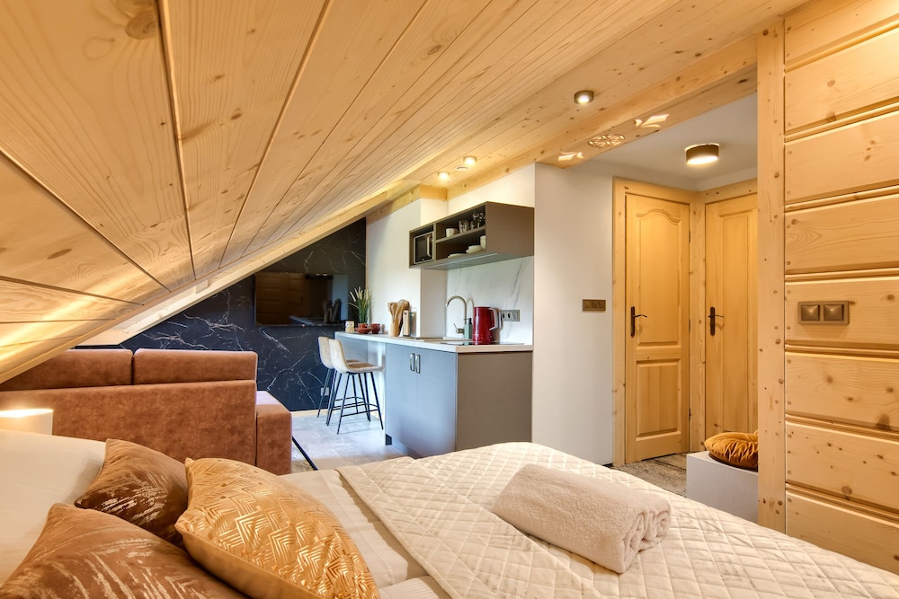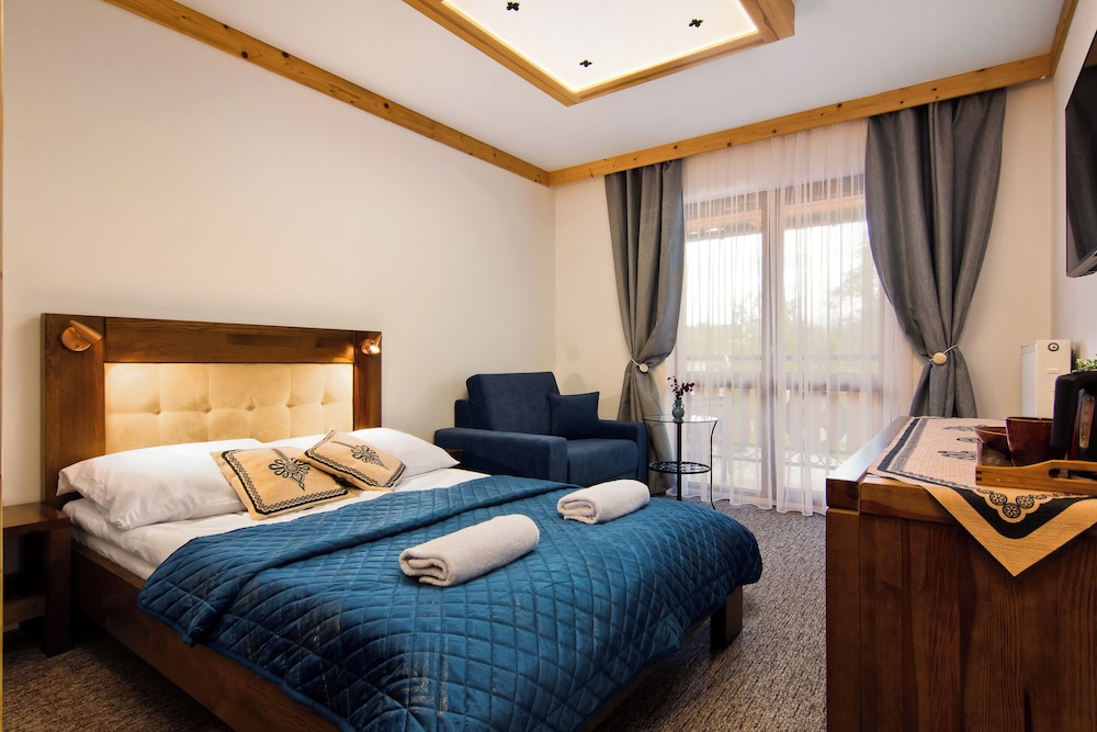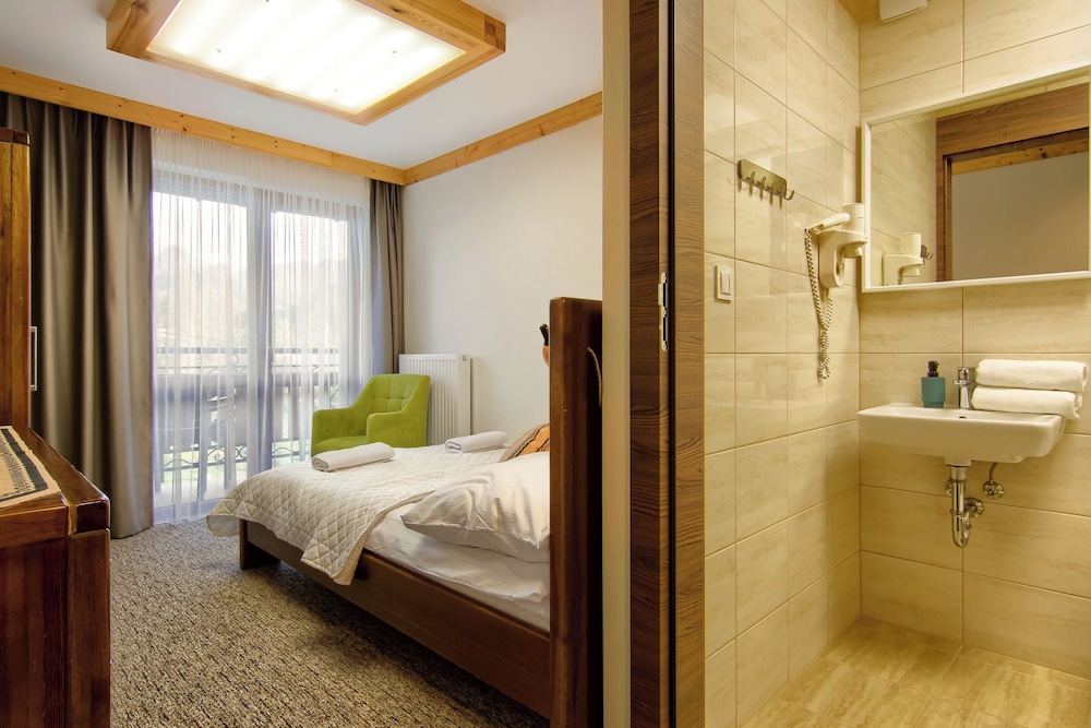 W czasie pobytu w obiekcie takim jak Willa Królewska w mieście Kościelisko będziesz bardzo blisko atrakcji takiej jak Drewniane cerkwie regionu karpackiego w Polsce i na Ukrainie i 5 minut samochodem od miejsca takiego jak Dolina Kościeliska. Pensjonat B&B znajduje się 4,2 km od atrakcji takiej jak Polana Szymoszkowa i 4,4 km od miejsca takiego jak Wyciąg narciarski Szymoszkowa. Poczuj się jak w domu w 15 pokojach, których wyposażenie to telewizor LED. Bezpłatny bezprzewodowy dostęp do internetu zapewni łączność ze światem. Prywatna łazienka — wyposażenie: prysznic, suszarki do włosów i szlafroki. Odległości są podane z dokładnością do 0,1 kilometra.