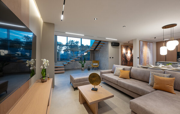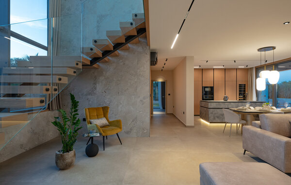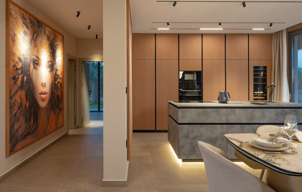 Ciesz się stylową atmosferą tego ekskluzywnego, designerskiego domu. Otwarta, zalana światłem architektura tworzy harmonijne poczucie życia, podczas gdy ty wyczarowujesz śródziemnomorskie specjały w ultranowoczesnej kuchni. Rozkoszuj się kulinarnymi przysmakami przy eleganckim stole jadalnym lub rozsiądź się wygodnie na przestronnej sofie, oglądając film lub słuchając muzyki.