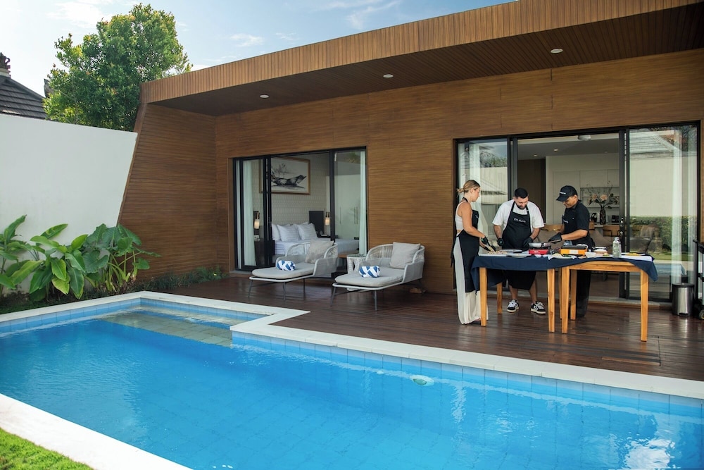 W czasie pobytu w obiekcie takim jak The Claremont Luxury Villas w mieście Seminyak (Laksmana) znajdziesz się w odległości pięciu minut samochodem od atrakcji takich jak Plaża w Seminyak i Ulica Eat. Willa znajduje się 3,1 km od atrakcji takiej jak Legian Beach (plaża) i 5 km od miejsca takiego jak Plaża w Kuta. Poczuj się jak w domu w 10 klimatyzowanych pokojach, których wyposażenie to prywatne baseny i telewizor LED. Do pokoju przylega balkon lub patio. Aneksy kuchenne — wyposażenie: lodówka, płyta kuchenna i kuchenka mikrofalowa. Bezpłatny przewodowy i bezprzewodowy dostęp do internetu zapewni łączność ze światem, a iPady i telewizja cyfrowa — rozrywkę. Odległości są podane z dokładnością do 0,1 kilometra.