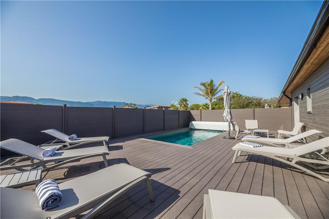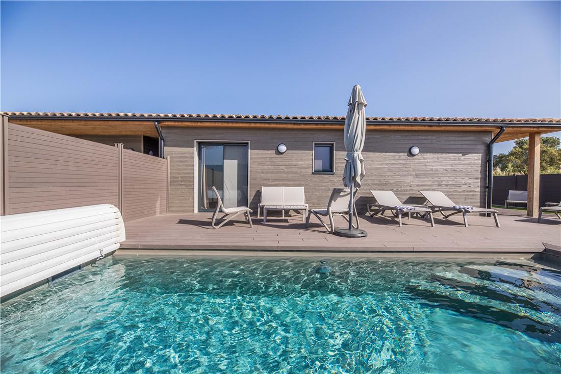 Pooony na terenie prywatnej posiadoci Marina Rossa w Porto-Vecchio, ten obiekt oferuje nowoczesne, klimatyzowane wille, zaledwie kilka kroków od morza. Kady dom wakacyjny dysponuje od dwóch do czterech sypialni, w peni wyposaon kuchni i wasnym, prywatnym, podgrzewanym basenem z umeblowanym tarasem. Obiekt znajduje si 300 metrów od play Cala Rossa, do której mona doj pieszo w pi do siedmiu minut. Na miejscu dostpny jest parking oraz sprzt do grillowania. Obiekt dba o zrównowaony rozwój i posiada certyfikat ekologiczny Green Key.