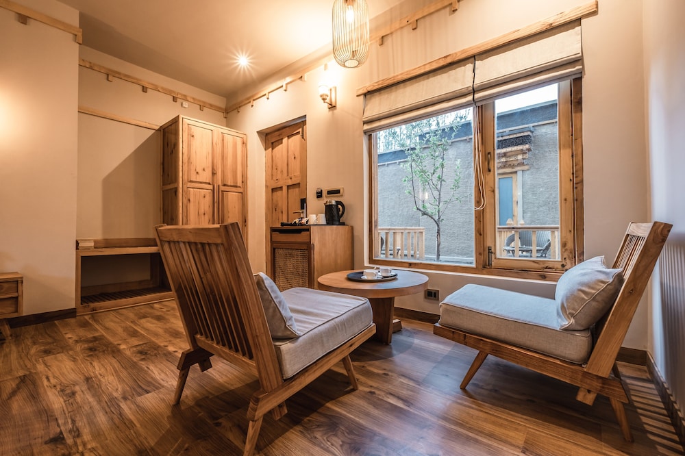 W czasie pobytu w obiekcie takim jak essence AT LADAKH w mieście Leh znajdziesz się niedaleko lotniska, jedynie 5 minut piechotą od atrakcji takiej jak Sankar Gompa i 8 minut piechotą od miejsca takiego jak Stupa Gomang. Hotel znajduje się 1,2 km od atrakcji takiej jak Pałac Królewski w Leh i 1,2 km od miejsca takiego jak Świątynia Leh. Poczuj się jak w domu w 60 pokojach, których wyposażenie to bezpłatny minibar i Telewizory Smart TV. Wyposażenie łóżek to kołdry puchowe i pościel premium. Bezpłatny bezprzewodowy dostęp do internetu zapewni łączność ze światem, a telewizja satelitarna — rozrywkę. Prywatna łazienka — wyposażenie: prysznic, prysznic z deszczownicą i bezpłatne przybory toaletowe. Odległości są podane z dokładnością do 0,1 kilometra.