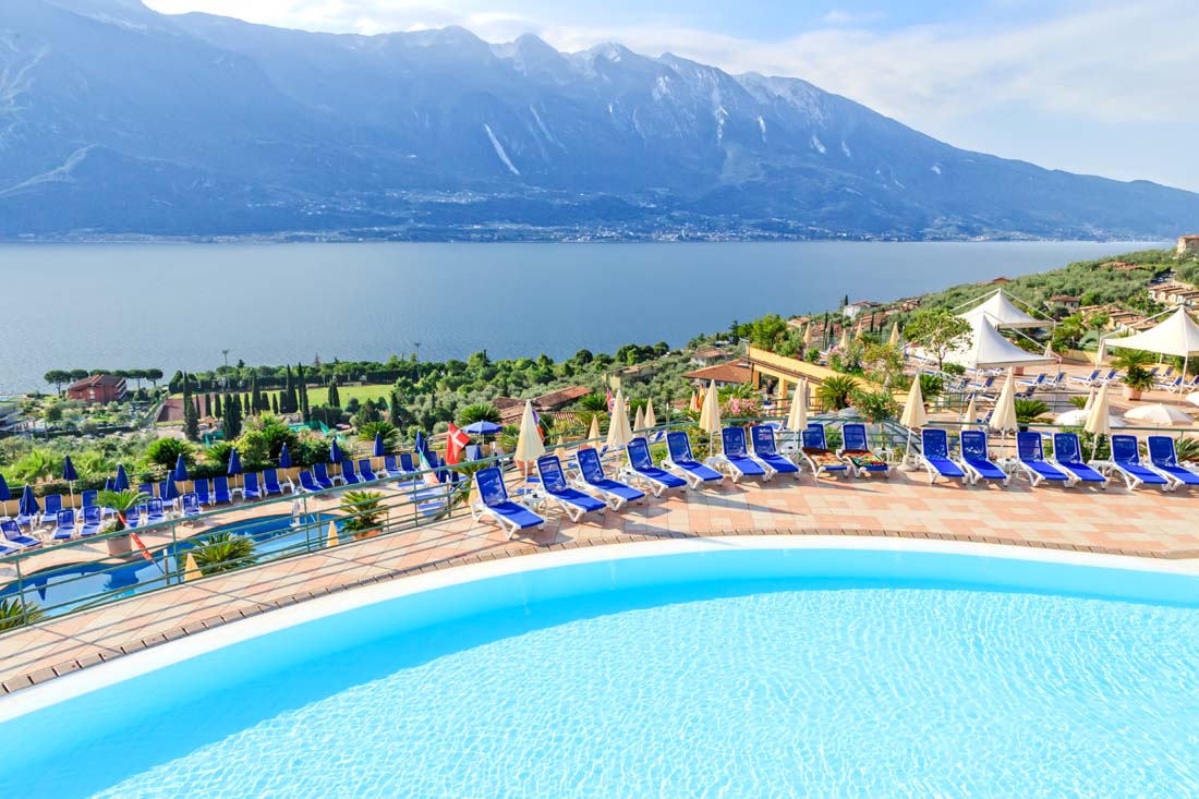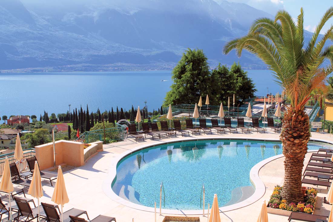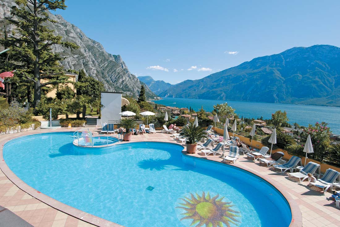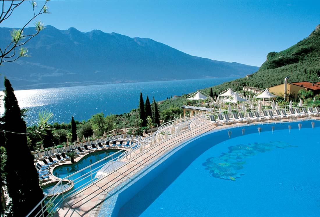 Hotel składa się w sumie z pięciu „willi”, ale mimo to nadal wydaje się mały i kameralny. Z pięknego terenu z basenami roztacza się wspaniały widok na jezioro Garda. W hotelu znajduje się kilka restauracji i barów. Można zagrać w bilard i wypożyczyć rowery. Do centrum można dojść pieszo w 15 minut, ale hotel oferuje dodatkowo płatny transport wahadłowy (08:30-18:00). Pralnia za opłatą. Darmowy dostęp do Wi-Fi w pomieszczeniach ogólnodostępnych. W ramach powitania goście otrzymują wodę i słodycze w pokoju. W okresie od kwietnia do października podwieczorek Tea-Time codziennie w godz. 16:00-17:00.