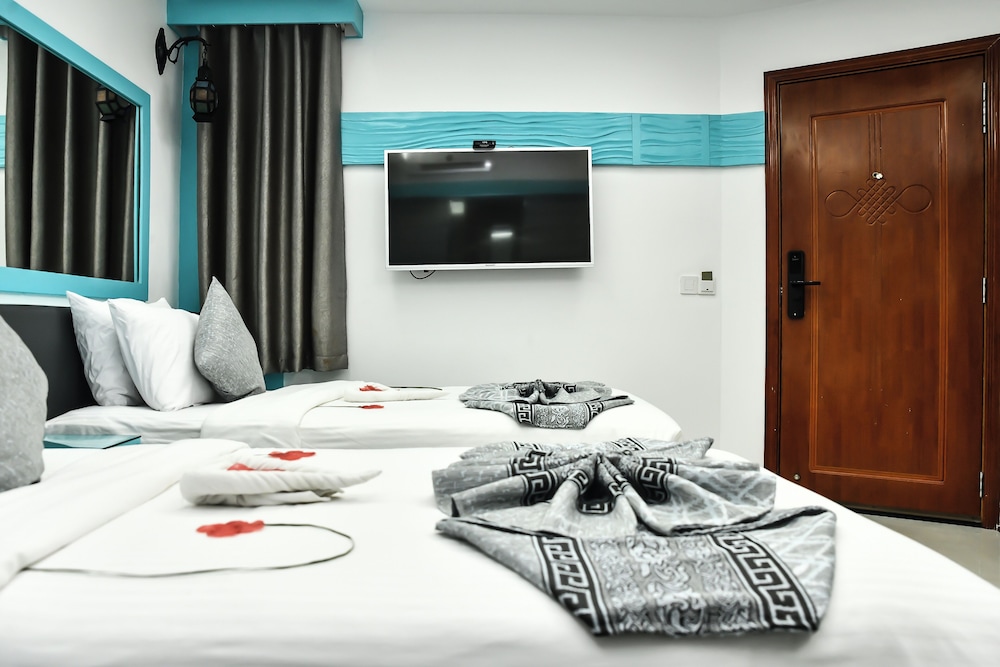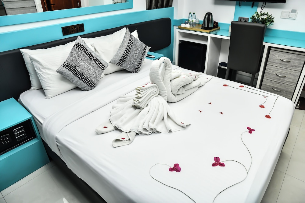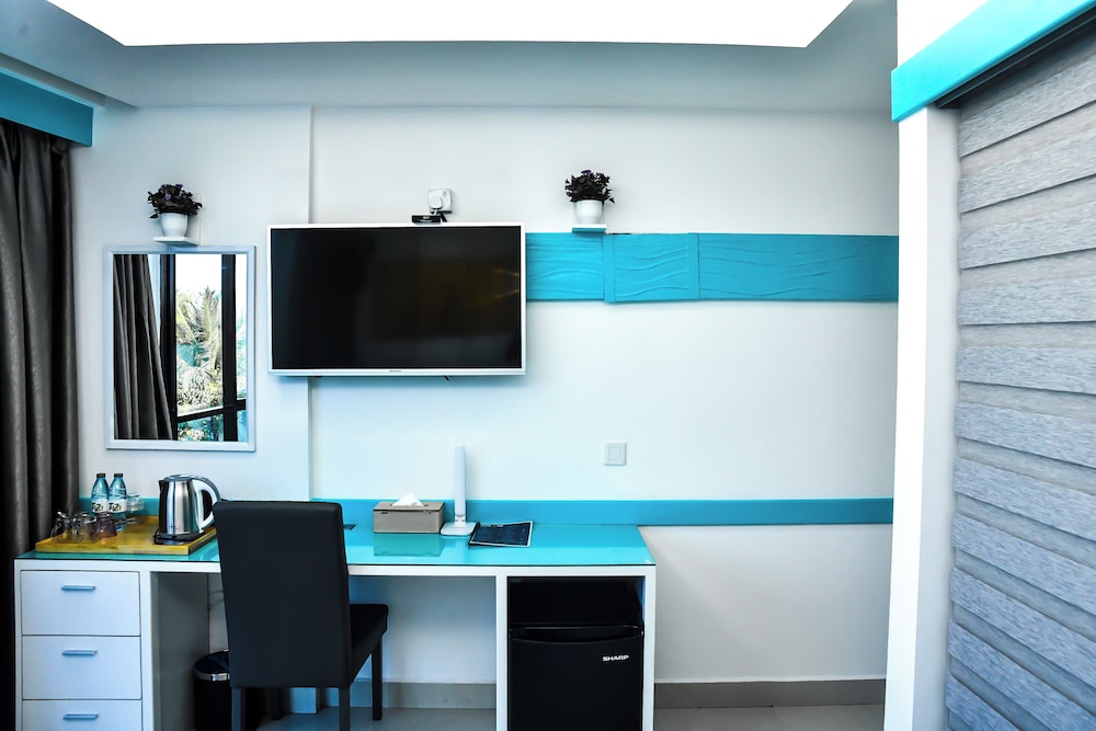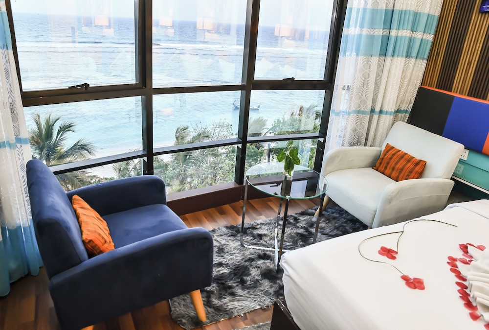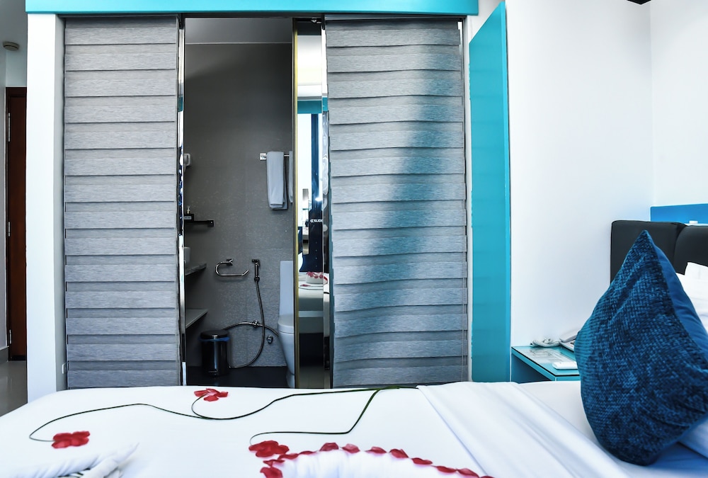 Położony w mieście Hulhumalé, The Hive Beach Hotel znajduje się 2 minut samochodem od atrakcji takiej jak Plaża na Hulhumalé i 10 minut od miejsca takiego jak Terminal promowy Hulhumale. Hotel (przy plaży) znajduje się 8,3 km od atrakcji takiej jak Centrum Islamskie Malediwów i 8,6 km od miejsca takiego jak Targ Rybny w Male. Poczuj się jak w domu w 22 klimatyzowanych pokojach. Bezpłatny bezprzewodowy dostęp do internetu zapewni łączność ze światem. Prywatna łazienka — wyposażenie: prysznic, bezpłatne przybory toaletowe i bidety. Udogodnienia obejmują sejfy i biurka oraz sprzątanie na życzenie. Udogodnienia biznesowe to recepcja całodobowa, przechowalnia bagażu oraz sejf w recepcji. Płatne udogodnienia to transport z i na lotnisko (całą dobę). Dostępne udogodnienia to bezpłatny bezprzewodowy dostęp do internetu, obsługa portierska oraz sala bankietowa. Do dyspozycji gości: restauracja i kawiarnia. W obiekcie takim jak hotel do Twojej dyspozycji pozostaje także obsługa pokojowa (w określonych godzinach). Codziennie hotel oferuje bezpłatne przyjęcie. Zrelaksuj się po całym dniu w barze/salonie klubowym.