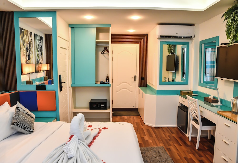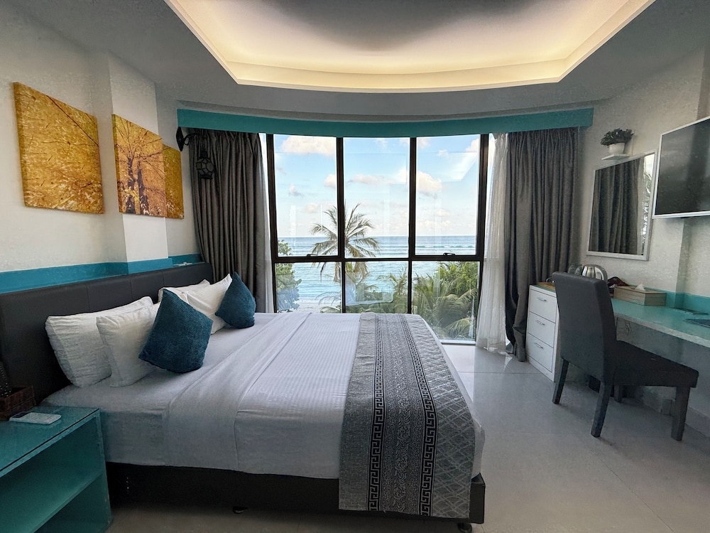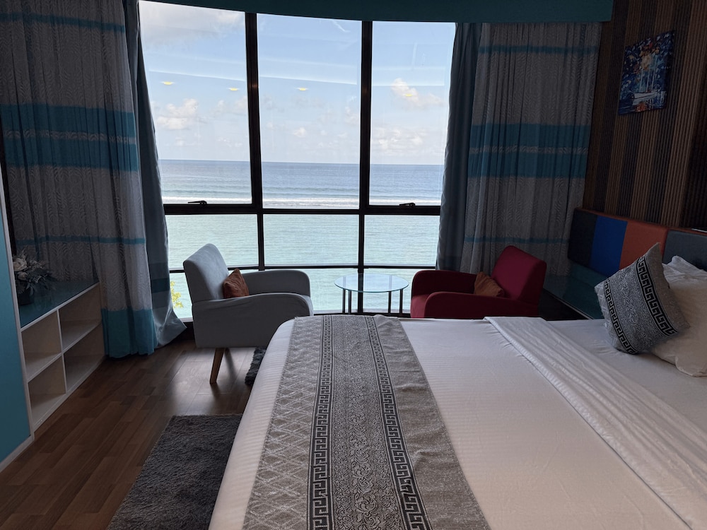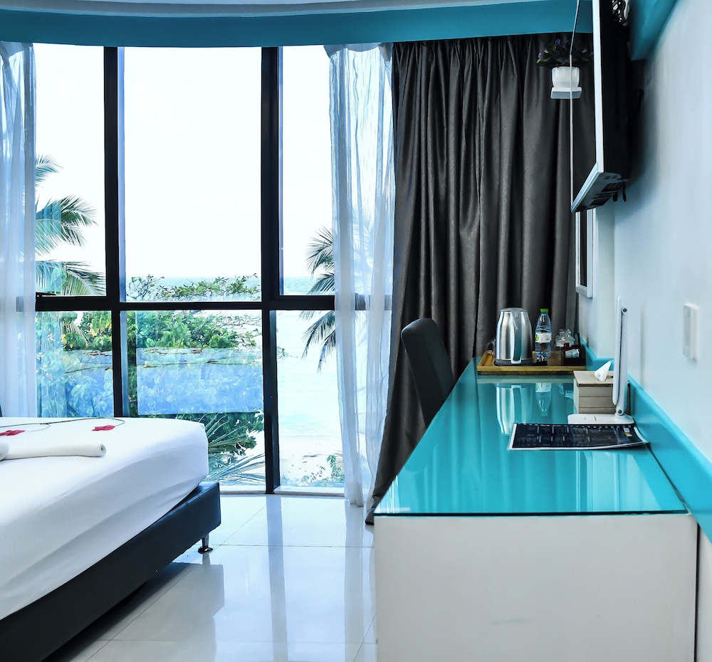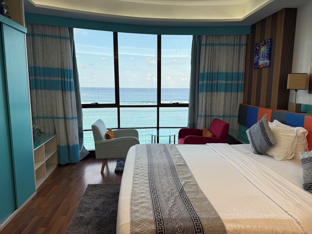 Położony w mieście Hulhumalé, The Hive Beach Hotel znajduje się 2 minut samochodem od atrakcji takiej jak Plaża na Hulhumalé i 10 minut od miejsca takiego jak Terminal promowy Hulhumale. Hotel (przy plaży) znajduje się 8,3 km od atrakcji takiej jak Centrum Islamskie Malediwów i 8,6 km od miejsca takiego jak Targ Rybny w Male. Poczuj się jak w domu w 22 klimatyzowanych pokojach. Bezpłatny bezprzewodowy dostęp do internetu zapewni łączność ze światem. Prywatna łazienka — wyposażenie: prysznic, bezpłatne przybory toaletowe i bidety. Udogodnienia obejmują sejfy i biurka oraz sprzątanie na życzenie. Udogodnienia biznesowe to recepcja całodobowa, przechowalnia bagażu oraz sejf w recepcji. Płatne udogodnienia to transport z i na lotnisko (całą dobę). Dostępne udogodnienia to bezpłatny bezprzewodowy dostęp do internetu, obsługa portierska oraz sala bankietowa. Do dyspozycji gości: restauracja i kawiarnia. W obiekcie takim jak hotel do Twojej dyspozycji pozostaje także obsługa pokojowa (w określonych godzinach). Codziennie hotel oferuje bezpłatne przyjęcie. Zrelaksuj się po całym dniu w barze/salonie klubowym.