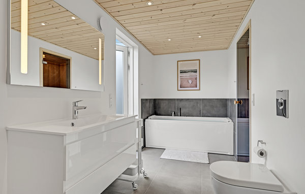 Dom posiada przytulny i bardzo jasny salon z piłkarzykami, piecem opalanym drewnem, grupą sof i jadalnią, który jest w otwartym połączeniu z nowocześnie wyposażoną kuchnią. W ładnych sypialniach, na otwartym poddaszu i w aneksie znajdą Państwo kilka przytulnych miejsc do spania. W domu znajduje się również jacuzzi i sauna dla odnowy biologicznej i ciepła w chłodniejsze dni. Plaża znajduje się w odległości zaledwie 1 minuty spacerem, posiada molo kąpielowe i została wyróżniona błękitną flagą.