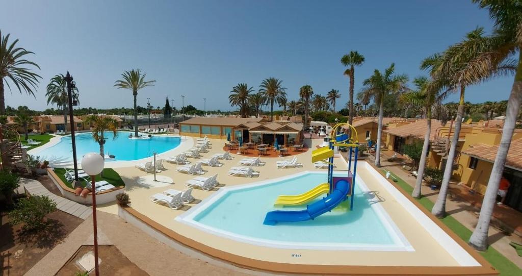 Apartamenty pooone s w samym sercu Maspalomas, w pobliu restauracji, barów i pubów. Kompleks skada si z 83 dwupitrowych bungalowów, ogrodu i tarasu. Gocie maj do dyspozycji caodobow recepcj, kantor wymiany walut i mini market. Na terenie obiektu znajduje si restauracja i bar koktajlowy, a take wypoyczalnia samochodów, plac zabaw i dostp do internetu. Kady bungalow skada si z jednej sypialni, salonu z aneksem kuchennym oraz azienki z prysznicem i suszark do wosów. Wyposaenie obejmuje telefon, mini lodówk, zestaw do parzenia kawy/herbaty, telewizor, sejf i balkon, a take indywidualnie sterowan klimatyzacj i ogrzewanie. Hotel oferuje basen z brodzikiem dla dzieci, siowni, korty tenisowe i minigolf. Za dodatkow opat mona skorzysta z sauny i masay. niadania i kolacje serwowane s w formie bufetu.