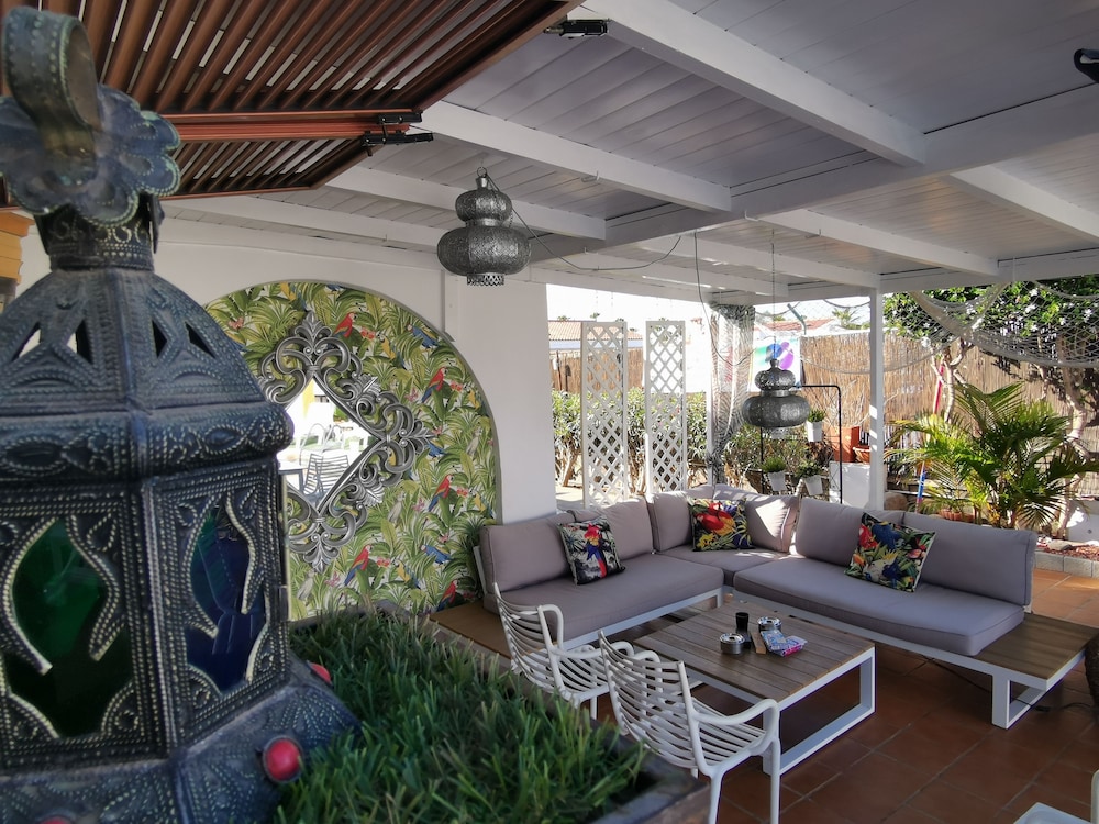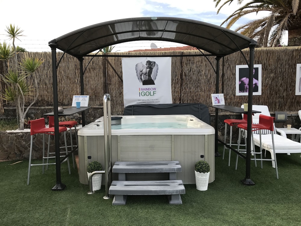 W czasie pobytu w obiekcie takim jak Rainbow Golf Gay Men-only Resort w mieście San Bartolomé de Tirajana (Maspalomas) zamieszkasz 10 minut samochodem od miejsc takich jak Yumbo (centrum handlowe) i Wydmy Maspalomas. Aparthotel znajduje się 22,1 km od atrakcji takiej jak Plaża Amadores i 24,9 km od miejsca takiego jak Port w Mogán. Poczuj się jak w domu w 21 pokojach, których wyposażenie to aneksy kuchenne (lodówka i płyta kuchenna). Do pokoju przylega patio. Bezpłatny bezprzewodowy dostęp do internetu zapewni łączność ze światem, a 43-cal. Telewizory Smart TV i telewizja satelitarna — rozrywkę. Udogodnienia obejmują sejfy na laptopa i biurka oraz sprzątanie codziennie. Udogodnienia biznesowe to ekspresowe zameldowanie, ekspresowe wymeldowanie oraz usługi pralni chemicznej. Dostępne udogodnienia rekreacyjne to basen odkryty, jacuzzi oraz sauna. Ten aparthotel oferuje takie udogodnienia jak bezpłatny bezprzewodowy dostęp do internetu, obsługa portierska i teren piknikowy. Za opłatą do dyspozycji gości jest wahadłowy autobus kursujący do pobliskich atrakcji. Do dyspozycji gości: restauracja i kawiarnia. W obiekcie takim jak aparthotel do Twojej dyspozycji pozostaje także obsługa pokojowa (w określonych godzinach). Ożywcze napoje znajdziesz w jednym z lokali: bar/salon klubowy i bar przy basenie.