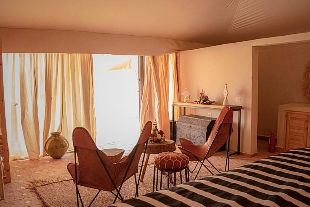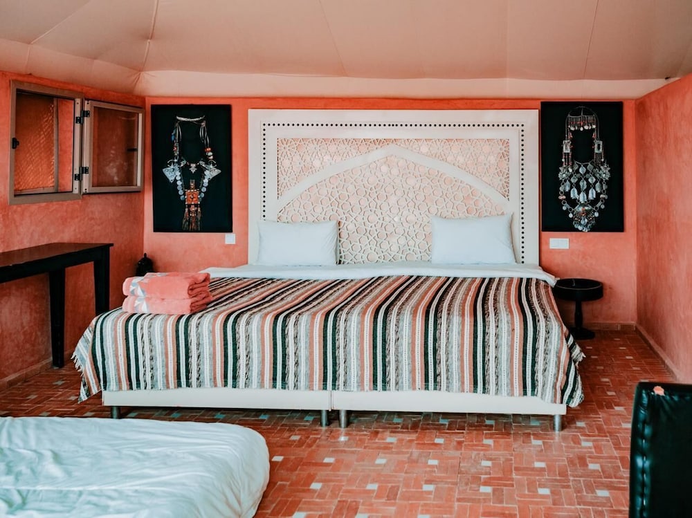 W czasie pobytu w obiekcie takim jak The Original Camp w mieście Agafay znajdziesz się niedaleko lotniska, 25,3 km od miejsca takiego jak Dżami al-Fana i 26,7 km od atrakcji takiej jak Ogród Majorelle. Tentalow znajduje się 24 km od atrakcji takiej jak Centrum handlowe Menara i 25,4 km od miejsca takiego jak Aleja Muhammada VI. Poczuj się jak w domu w 6 oryginalnie udekorowane pokojach, których wyposażenie to podgrzewane podłogi. Do pokoju przylega umeblowane lanai. Udogodnienia obejmują sprzątanie codziennie oraz bezpłatne łóżka dostawiane na życzenie. Bezpłatne udogodnienia to transport z lotniska i na lotnisko (całą dobę). Do pokoju przylega taras, z którego roztacza się piękny widok. Dostępne są również takie udogodnienia rekreacyjne, jak basen odkryty. Ten tentalow oferuje również takie udogodnienia jak pomoc w organizacji biletów/wycieczek i teren piknikowy. Goście obiektu The Original Camp mogą zjeść pyszny posiłek w restauracji Restaurant The Original C. Hotel oferuje bezpłatne śniadanie w formie bufetu codziennie od 9 do 10.