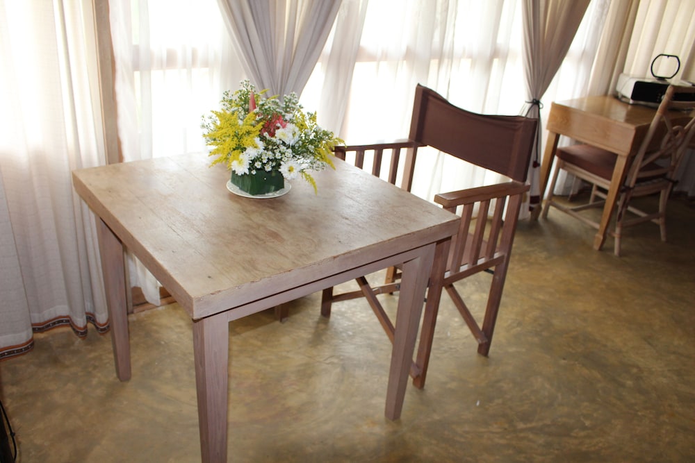 W czasie pobytu w obiekcie takim jak Pai Vimaan Resort znajdziesz się w samym centrum miasta Pai, bardzo blisko atrakcji takiej jak Rzeka Pai i 5 minut piechotą od miejsca takiego jak Deptak. Ośrodek wczasowy znajduje się 0,8 km od atrakcji takiej jak Wat Klang i 0,8 km od miejsca takiego jak Nocny Targ w Pai. Poczuj się jak w domu w 17 klimatyzowanych pokojach, których wyposażenie to lodówka i minibar. Do pokoju przylega balkon. Bezpłatny bezprzewodowy dostęp do internetu zapewni łączność ze światem, a telewizja kablowa — rozrywkę. Prywatna łazienka — wyposażenie: wanna połączona z prysznicem, prysznic z deszczownicą i bezpłatne przybory toaletowe. Udogodnienia biznesowe to bezpłatne czasopisma w holu, usługi pralni chemicznej oraz recepcja całodobowa. Płatne udogodnienia to transport z i na lotnisko (na życzenie). Dostępna jest także taka usługa jak bezpłatne parkowanie przez obsługę. Usługi spa na miejscu to masaż. Dostępne są również takie udogodnienia rekreacyjne, jak rowery do wypożyczenia. Ten ośrodek wczasowy oferuje również udogodnienia takie jak bezpłatny bezprzewodowy dostęp do internetu, obsługa portierska i usługi weselne. Do dyspozycji gości jest bezpłatny wahadłowy autobus kursujący do pobliskich atrakcji. Odwiedź restaurację Pai Vimaan Restaurant — jest to restauracja, której specjalnością jest kuchnia taka jak kuchnia tajska i gdzie wydawane są posiłki takie jak obiad i kolacja. Jedzenie i picie serwują również miejsca takie jak kawiarnia oraz do Twojej dyspozycji pozostaje obsługa pokojowa (w określonych godzinach). Śniadanie na zamówienie jest podawane codziennie od 7 do 10 za opłatą.
