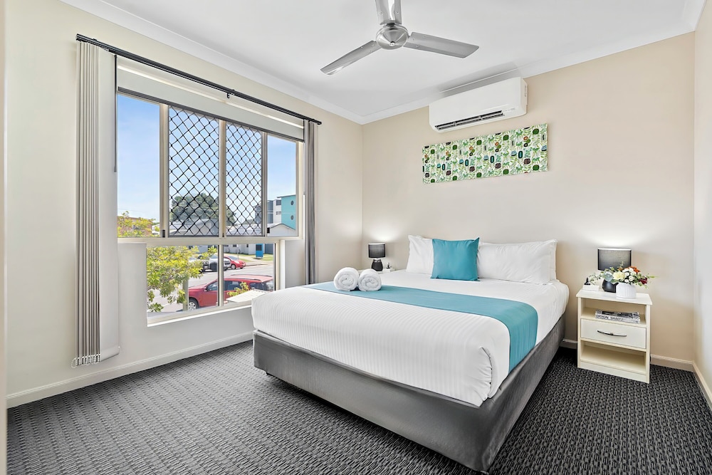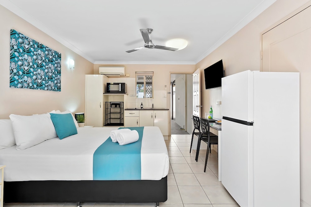 Cityville Apartments & Motel znajduje się w samym centrum miasta Rockhampton, a 4 minutę piechotą od Centrum Wodne Pamięci II Wojny Światowej i 15 minut piechotą od Teren wystawowy w Rockhampton. Aparthotel znajduje się 1,5 km od atrakcji takiej jak Prywatny szpital w Hillcrest Rockhampton i 1,8 km od miejsca takiego jak Szpital w Rockhampton. Poczuj się jak w domu w 24 oryginalnie udekorowane pokojach, których wyposażenie to kuchnie (lodówka i płyta kuchenna). Bezpłatny bezprzewodowy dostęp do internetu zapewni łączność ze światem, a 40-cal. telewizor LCD i telewizja cyfrowa — rozrywkę. Udogodnienia obejmują biurka i kuchenki mikrofalowe oraz sprzątanie raz w tygodniu. Udogodnienia biznesowe to ekspresowe wymeldowanie, przechowalnia bagażu oraz pralnia. Udogodnienia na miejscu to bezpłatne parkowanie samodzielne. Do pokoju przylega ogród, z którego roztacza się piękny widok. Dostępne są również takie udogodnienia rekreacyjne, jak basen odkryty. Ten aparthotel oferuje również udogodnienia takie jak bezpłatny bezprzewodowy dostęp do internetu, pomoc w organizacji biletów/wycieczek i grill.