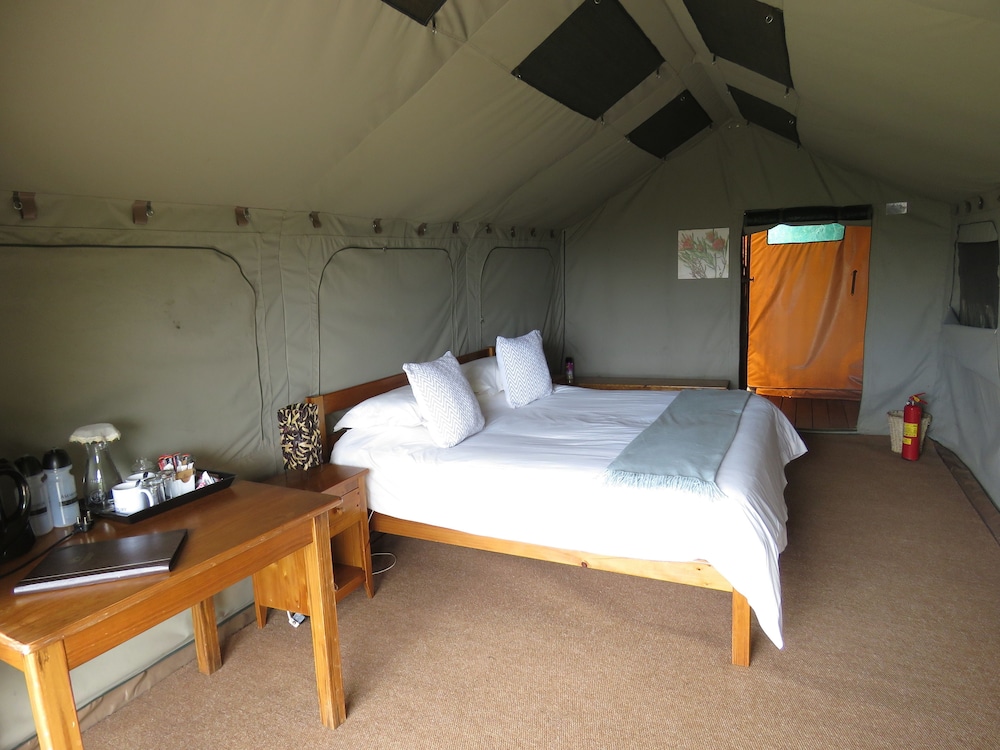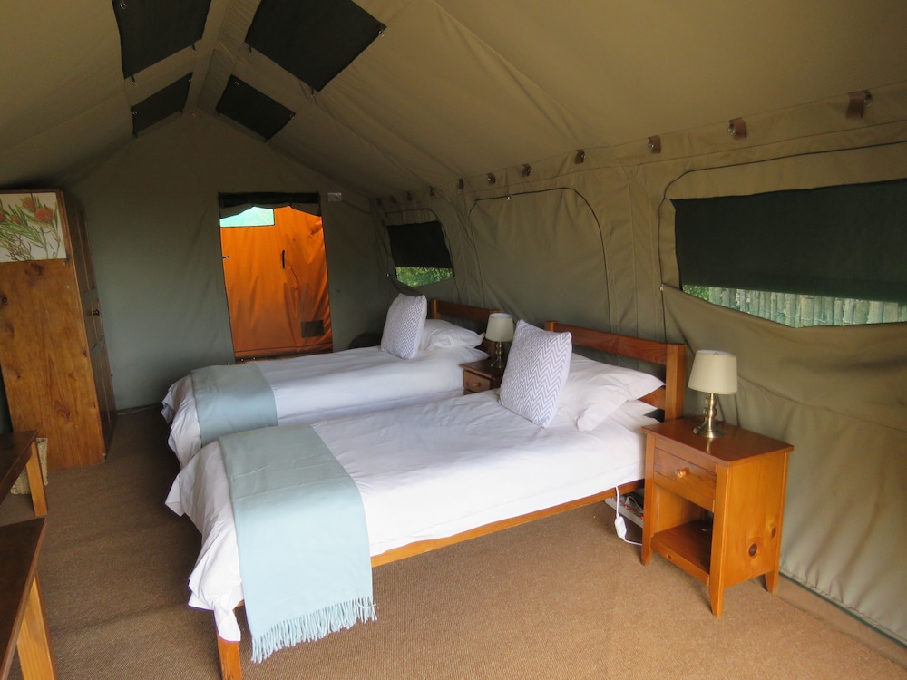 W czasie pobytu w obiekcie takim jak Woodbury Tented Camp - Amakhala Game Reserve w mieście Sidbury, znajdziesz się 41,4 km od miejsca takiego jak Wydmy rzeki Sundays i 44,4 km od atrakcji takiej jak Brama Matyholweni. Tentalow (all inclusive) umieszczono w pobliżu takich atrakcji, jak Punkt widokowy na przełęcz Olifantskop. Poczuj się jak w domu w 10 pokojach. Prywatna łazienka — wyposażenie: prysznic, bezpłatne przybory toaletowe i suszarki do włosów. Udogodnienia obejmują sejfy i zestawy do parzenia kawy i herbaty oraz sprzątanie codziennie. Udogodnienia biznesowe to usługi pralni chemicznej, przechowalnia bagażu oraz pralnia. Płatne udogodnienia to transport z i na lotnisko. Dostępna jest także taka usługa jak bezpłatne parkowanie samodzielne. Dostępne atrakcje i udogodnienia relaksacyjne to safari oraz 2 baseny odkryte. Ten tentalow oferuje udogodnienia takie jak bezpłatny bezprzewodowy dostęp do internetu, sklepy z pamiątkami i czasopismami i grill. Apetyt gości obiektu Woodbury Tented Camp - Amakhala Game Reserve zaspokoi restauracja. Ożywcze napoje znajdziesz w jednym z lokali: bar/salon klubowy. Hotel oferuje bezpłatne śniadanie na zamówienie codziennie od 7 do 10. Jakość oceniona przez Tourism Grading Council of South Africa (TGCSA) – oficjalną organizację ds. kontroli jakości w Republice Południowej Afryki.