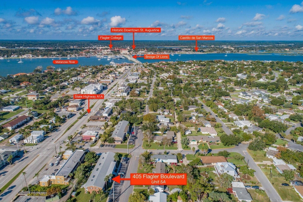 W czasie pobytu w obiekcie takim jak to mieszkanie znajdziesz się w samym centrum miasta St. Augustine, pięć minut samochodem od atrakcji takich jak Castillo de San Marcos i Flagler College. Kondominium znajduje się 6,2 km od atrakcji takiej jak St. Augustine Beach i 2,3 km od miejsca takiego jak ulica St. George. Mieszkanie zapewni Ci wygodę, oferując dostęp do takich udogodnień jak kuchnia. Bezpłatny bezprzewodowy dostęp do internetu zapewni łączność ze światem, a telewizor Smart TV — rozrywkę. Odległości są podane z dokładnością do 0,1 kilometra.
