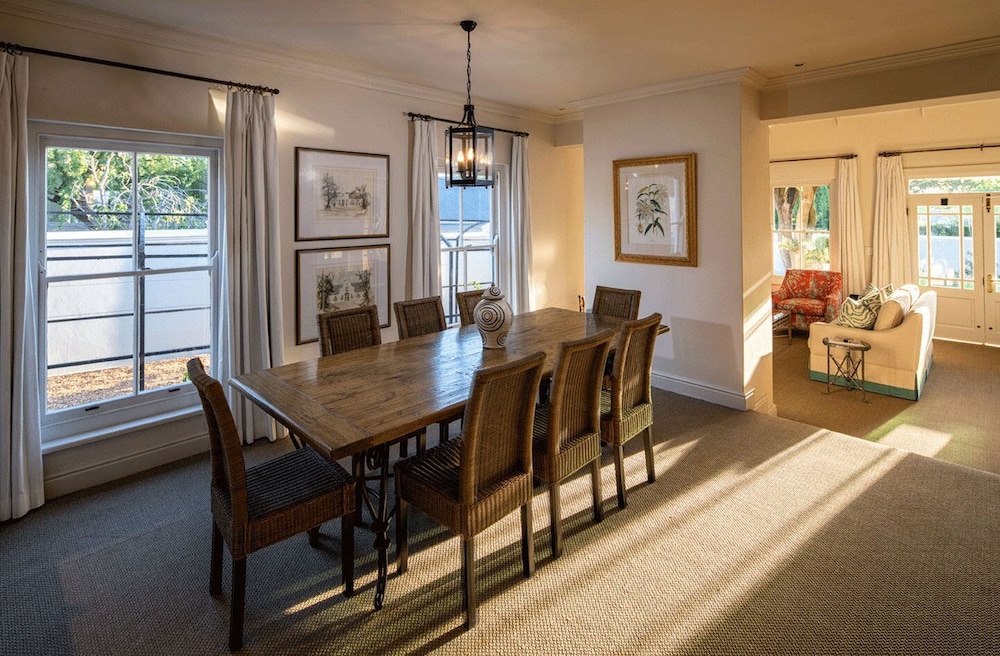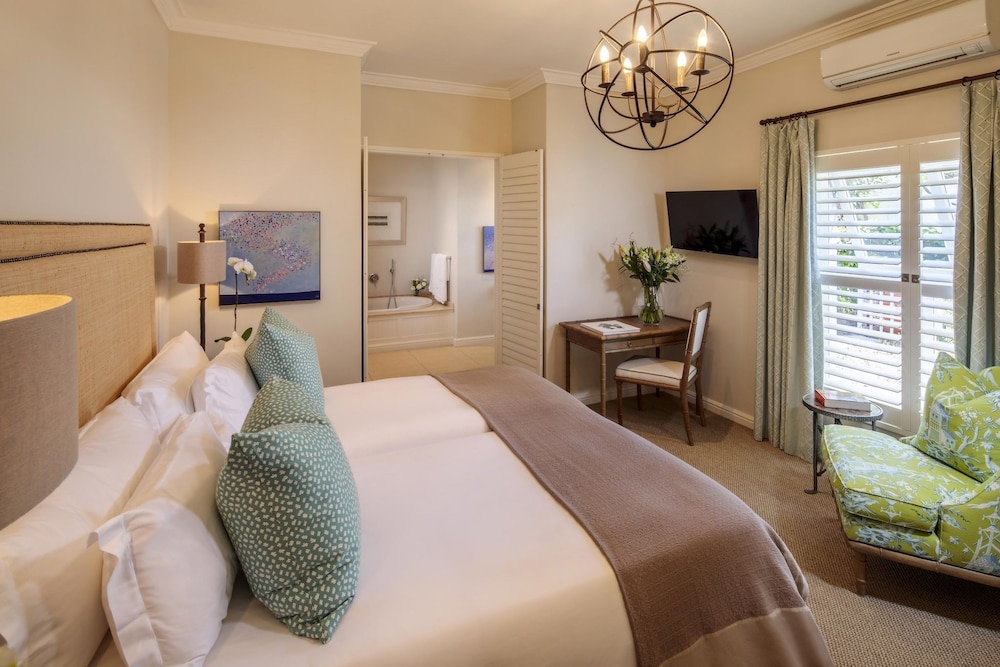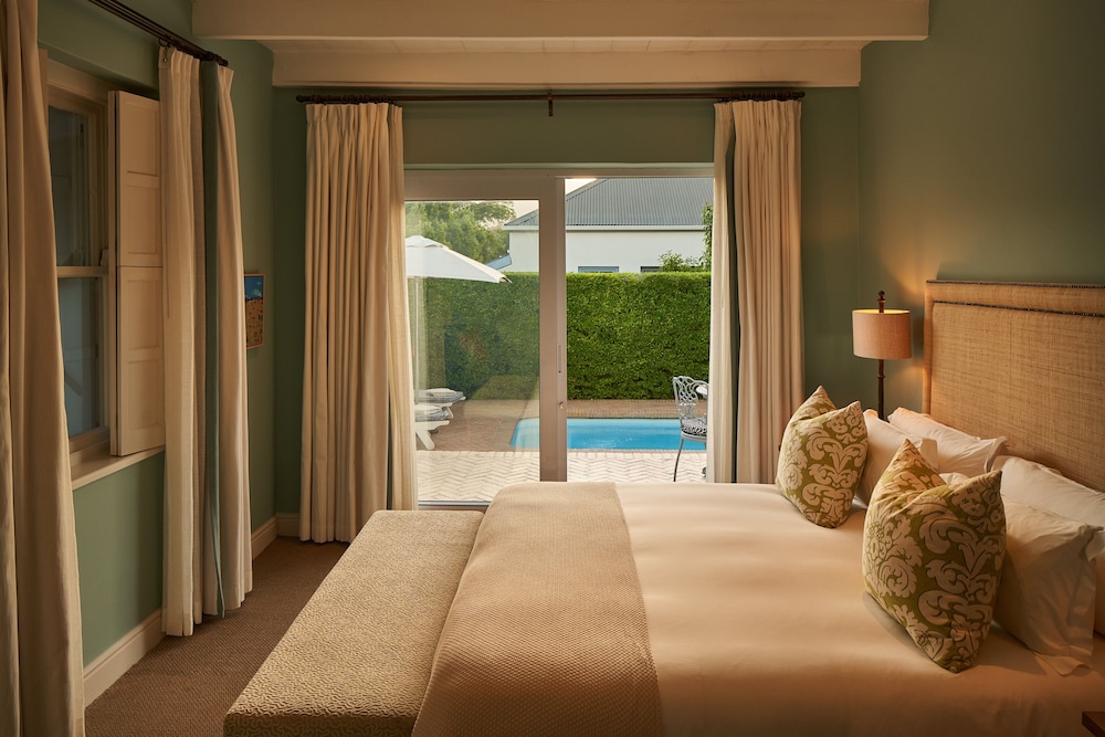W czasie pobytu w obiekcie takim jak Le Quartier Francais znajdziesz się w samym centrum miasta Franschhoek, jedynie 4 minut piechotą od atrakcji takiej jak Galeria sztuki Sénéchal-Senekal i 5 minut piechotą od miejsca takiego jak Ratusz w Franschhoek. Hotel (w stylu luksusowym) znajduje się 0,5 km od atrakcji takiej jak Muzeum Hugenotów i 0,6 km od miejsca takiego jak Galeria sztuki Franschhoek Art House. Poczuj się jak w domu w 25 pokojach, których wyposażenie to kominki i telewizor płaskoekranowy. Bezpłatny bezprzewodowy dostęp do internetu zapewni łączność ze światem, a telewizja cyfrowa — rozrywkę. Udogodnienia obejmują sejfy i biurka oraz telefon (bezpłatne połączenia telefoniczne miejscowe). Udogodnienia biznesowe to usługi pralni chemicznej, recepcja całodobowa oraz przechowalnia bagażu. Płatne udogodnienia to transport z i na lotnisko (całą dobę). Dostępna jest także taka usługa jak bezpłatne parkowanie przez obsługę. Do pokoju przylegają taras i ogród, z których roztacza się piękny widok. Dostępne są również takie udogodnienia rekreacyjne, jak basen odkryty. Ten hotel oferuje udogodnienia takie jak bezpłatny bezprzewodowy dostęp do internetu, obsługa portierska i usługi niani (za dopłatą). Zjedz coś w restuaracji Protégé jednej z 2 restauracji w obiekcie takim jak hotel's lub zostań w pokoju i skorzystaj z całodobowej obsługi pokojowej. Zrelaksuj się po całym dniu w barze przy basenie. Hotel oferuje bezpłatne śniadanie w formie bufetu codziennie od 7 do 11. Jakość oceniona przez Tourism Grading Council of South Africa (TGCSA) – oficjalną organizację ds. kontroli jakości w Republice Południowej Afryki.