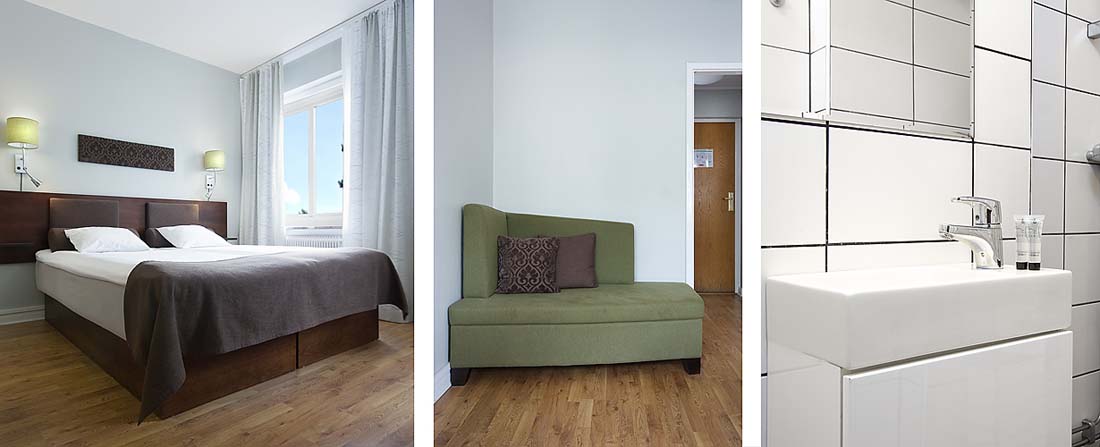Pokoje dwuosobowe z maks 1 dostawką, 2 dzieci do 6 roku życia nocuje za darmo w łóżku rodziców. Sprzątanie na koniec pobytu w cenie. Dodatkowe sprzątanie płatne dodatkowe 95 SEK: należy je zarezerwować i opłacić bezpośrednio w hotelu. Tv, telefon, suszarka do włosów, łazienka/prysznic i wc.