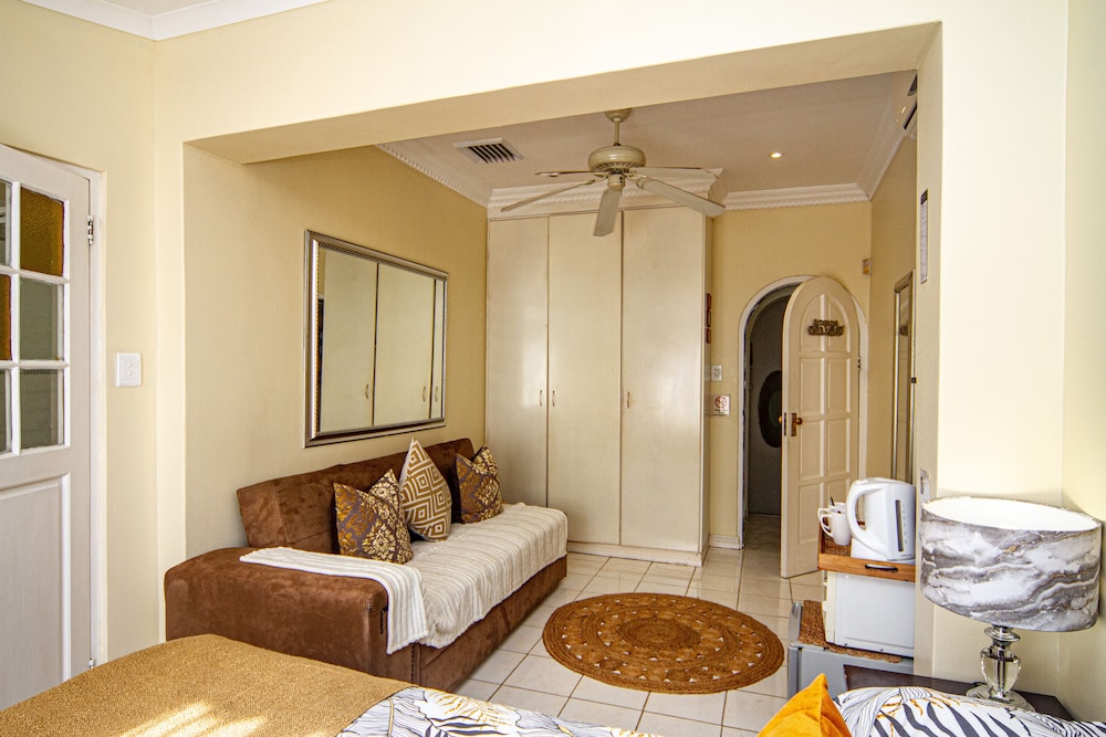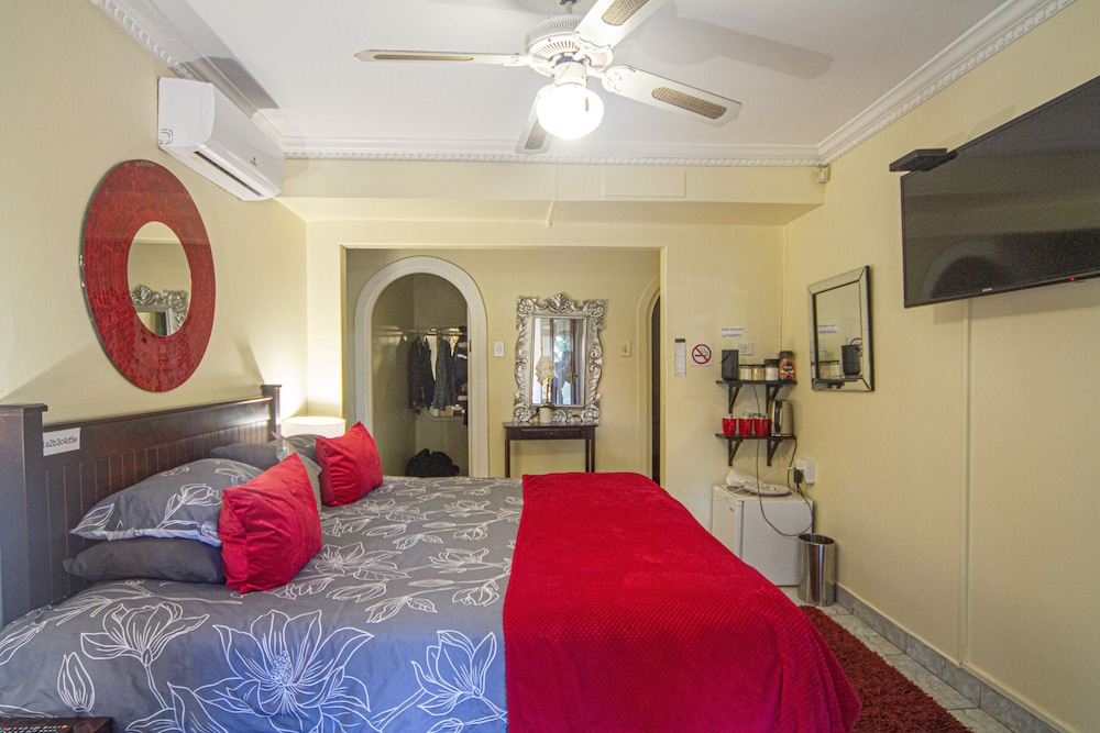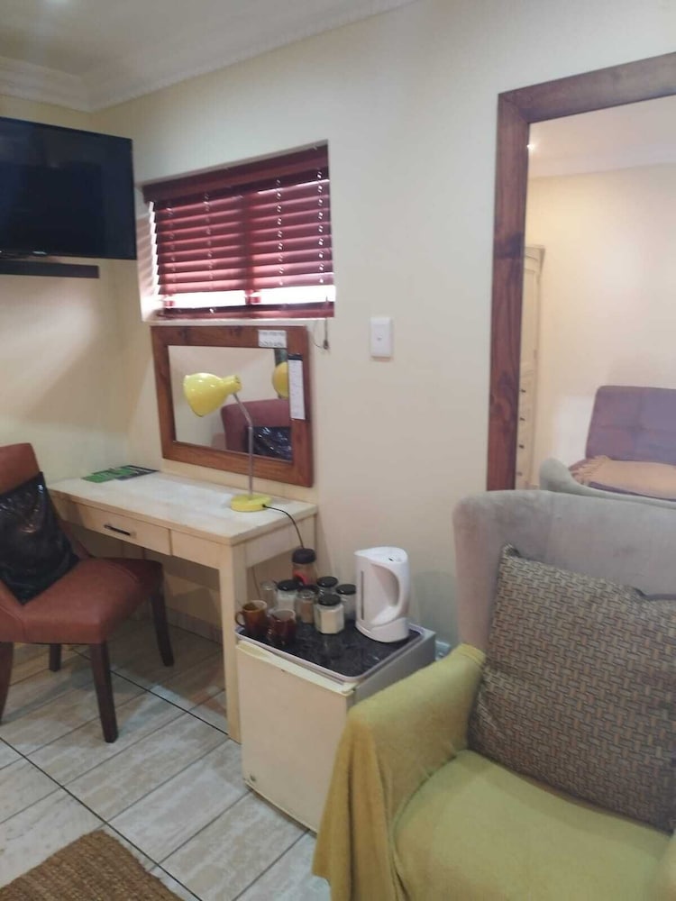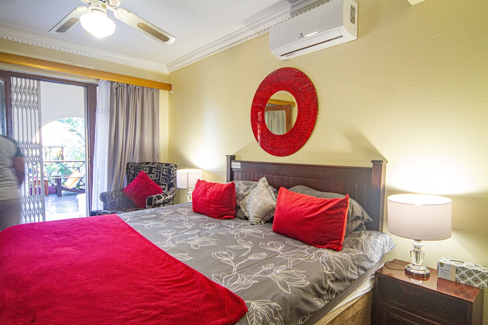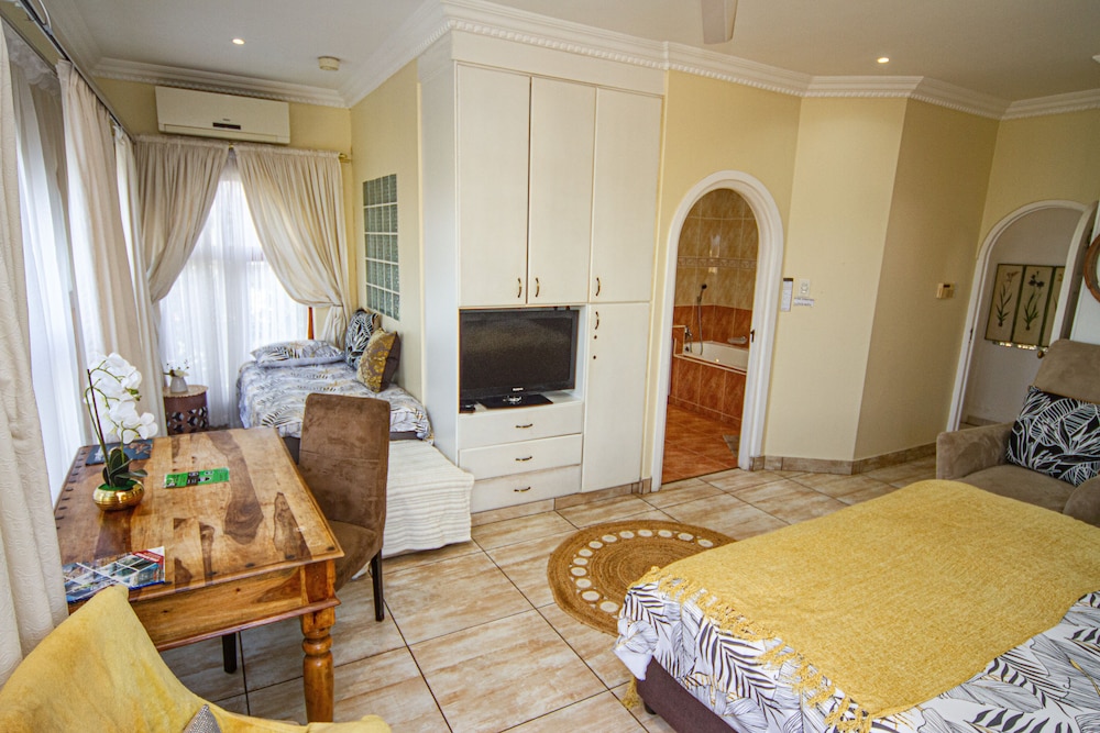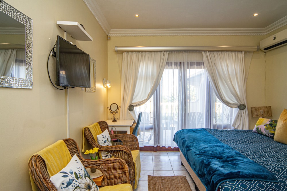 W czasie pobytu w obiekcie takim jak La Loggia B&B w mieście uMhlanga zamieszkasz w dzielnicy biznesowej, 10 minut samochodem od atrakcji takich jak Plaża Umhlanga i Plaża w Durban. Pensjonat B&B (z atmosferą przyjazną rodzinom) znajduje się 20 km od atrakcji takiej jak Park wodny uShaka i 1,6 km od miejsca takiego jak Centrum KwaZulu-Natal Sharks Board. Poczuj się jak w domu w 9 klimatyzowanych pokojach, których wyposażenie to telewizor plazmowy. Do pokoju przylega balkon lub patio. Bezpłatny bezprzewodowy dostęp do internetu zapewni łączność ze światem, a telewizja satelitarna — rozrywkę. Prywatna łazienka — wyposażenie: prysznic, bezpłatne przybory toaletowe i suszarki do włosów. Udogodnienia biznesowe to centrum biznesowe, usługi pralni chemicznej oraz recepcja całodobowa. Udogodnienia na miejscu to bezpłatne parkowanie samodzielne. Do pokoju przylegają taras i ogród, z których roztacza się piękny widok. Dostępne są również takie udogodnienia rekreacyjne, jak basen odkryty. Ten pensjonat B&B oferuje udogodnienia takie jak bezpłatny bezprzewodowy dostęp do internetu, usługi niani (za dopłatą) i pomoc w organizacji biletów/wycieczek. W obiekcie takim jak pensjonat B&B do dyspozycji gości są restauracja, a także obsługa pokojowa. Ożywcze napoje znajdziesz w jednym z lokali: bar/salon klubowy. Hotel oferuje bezpłatne śniadanie angielskie codziennie od 6:30 do 9:30.
