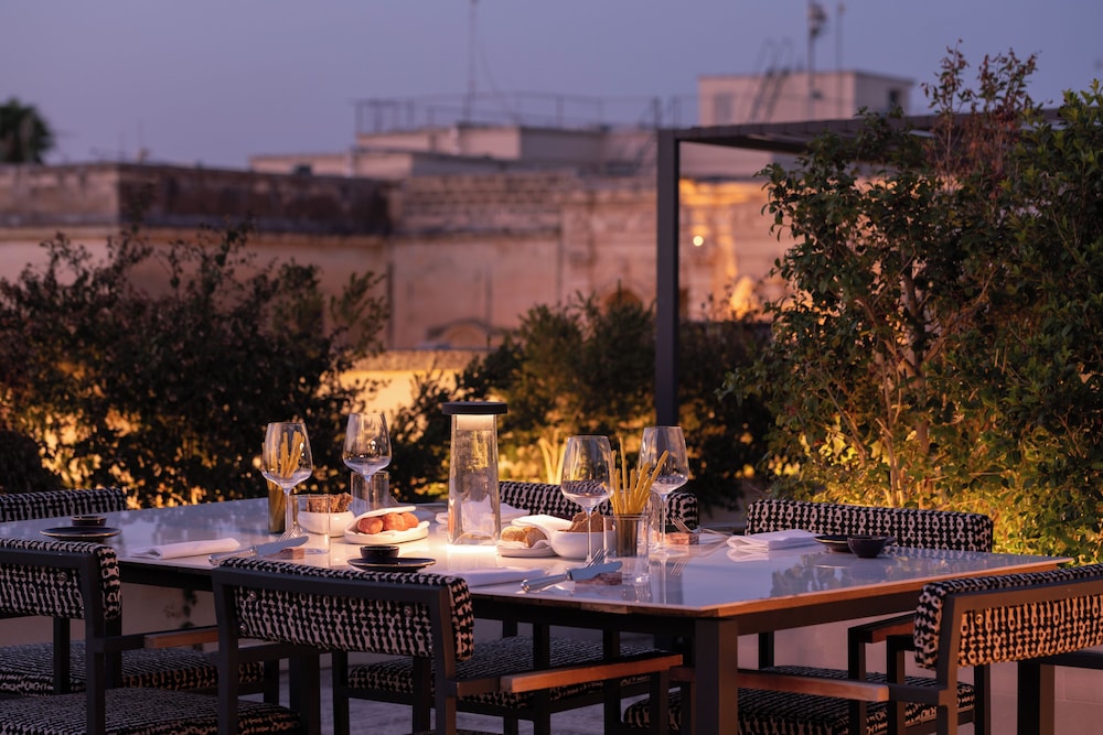 W czasie pobytu w obiekcie takim jak Patria Palace Hotel Lecce - Leading Hotels of the World zamieszkasz w samym sercu miasta Lecce, bardzo blisko atrakcji takich jak Kościół Świętego Krzyża i Piazzetta Sigismondo Castromediano. Hotel (w stylu luksusowym) znajduje się 0,1 km od atrakcji takiej jak Kościół Najświętszego Imienia Jezus w Palermo i 0,3 km od miejsca takiego jak Kościół Santa Maria delle Grazie. Poczuj się jak w domu w 61 pokojach, których wyposażenie to minibar i telewizor LCD. Wyposażenie łóżek to pillowtop oraz kołdry puchowe i pościel premium. Bezpłatny przewodowy i bezprzewodowy dostęp do internetu zapewni łączność ze światem, a telewizja satelitarna — rozrywkę. Prywatna łazienka — wyposażenie: wanna połączona z prysznicem, bezpłatne przybory toaletowe i bidety. Udogodnienia biznesowe to bezpłatny przewodowy dostęp do internetu, wynajem limuzyn i samochodów oraz komputer stacjonarny. Płatne udogodnienia to transport z i na lotnisko (całą dobę). Do pokoju przylegają taras na dachu i ogród, z których roztacza się piękny widok. Dostępne są również takie udogodnienia rekreacyjne, jak rowery do wypożyczenia. Ten hotel w stylu art deco oferuje udogodnienia takie jak bezpłatny bezprzewodowy dostęp do internetu, obsługa portierska oraz usługi weselne. Do dyspozycji gości jest bezpłatny wahadłowy autobus kursujący na plażę. Spróbuj dań kuchni takiej jak kuchnia śródziemnomorska, które serwuje Atenze, restauracja, gdzie znajduje się doskonale wyposażony bar/salon klubowy. Możesz też zostać w pokoju i skorzystać z obsługi pokojowej w określonych godzinach. Hotel oferuje bezpłatne śniadanie w formie bufetu codziennie od 8 do 10. Liczba gwiazdek tego obiektu przyznana została przez organizację the local rating authority.